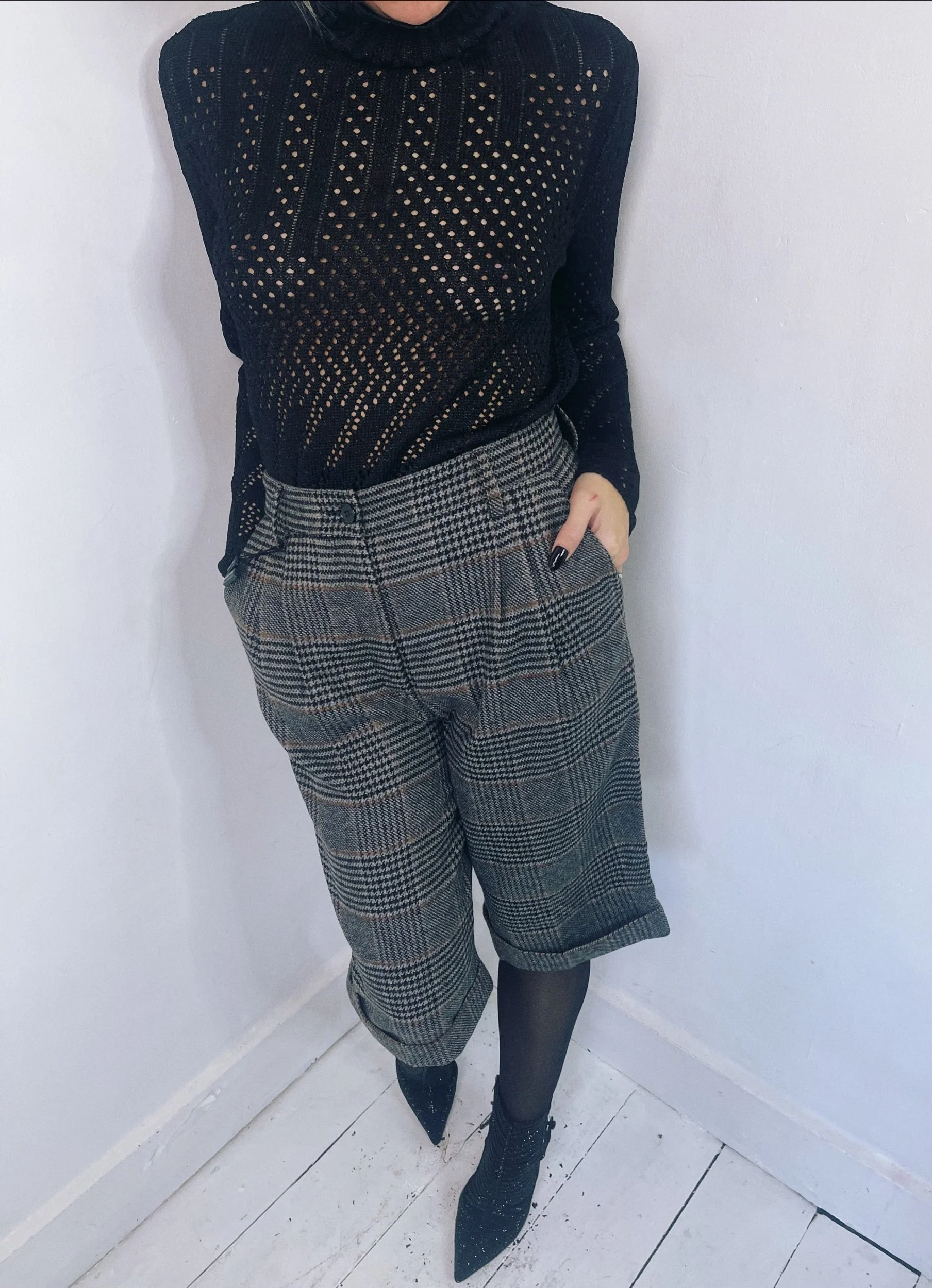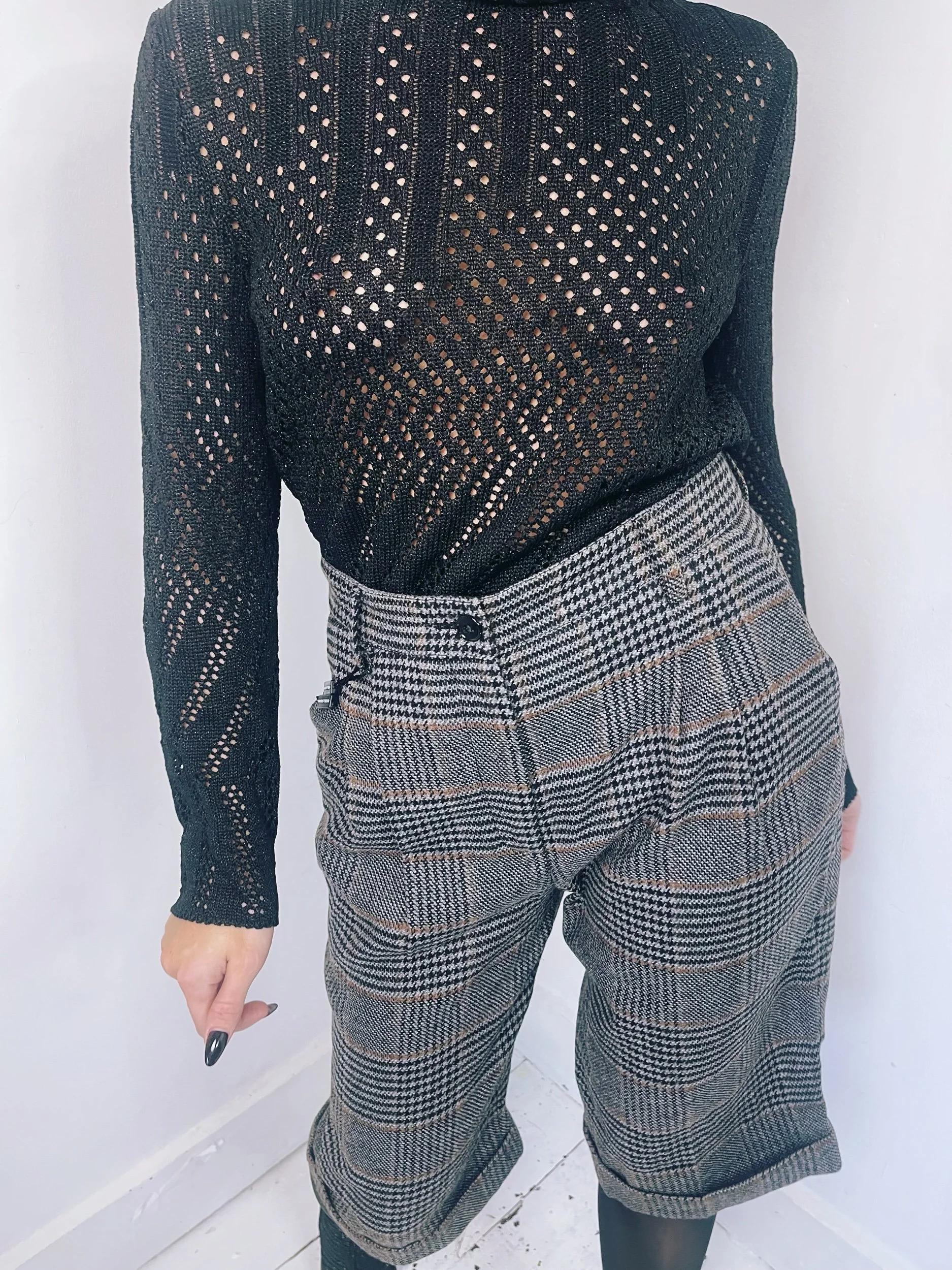 Channel your inner Carrie Bradshaw with these stunning Dolce & Gabbana tweed knee-length shorts. Crafted in a classic Prince-of-Wales check, they strike the perfect balance between chic tailoring and effortless cool. The structure and detail elevate any winter wardrobe — pair them with tights, heels, or boots for a modern, editorial look.