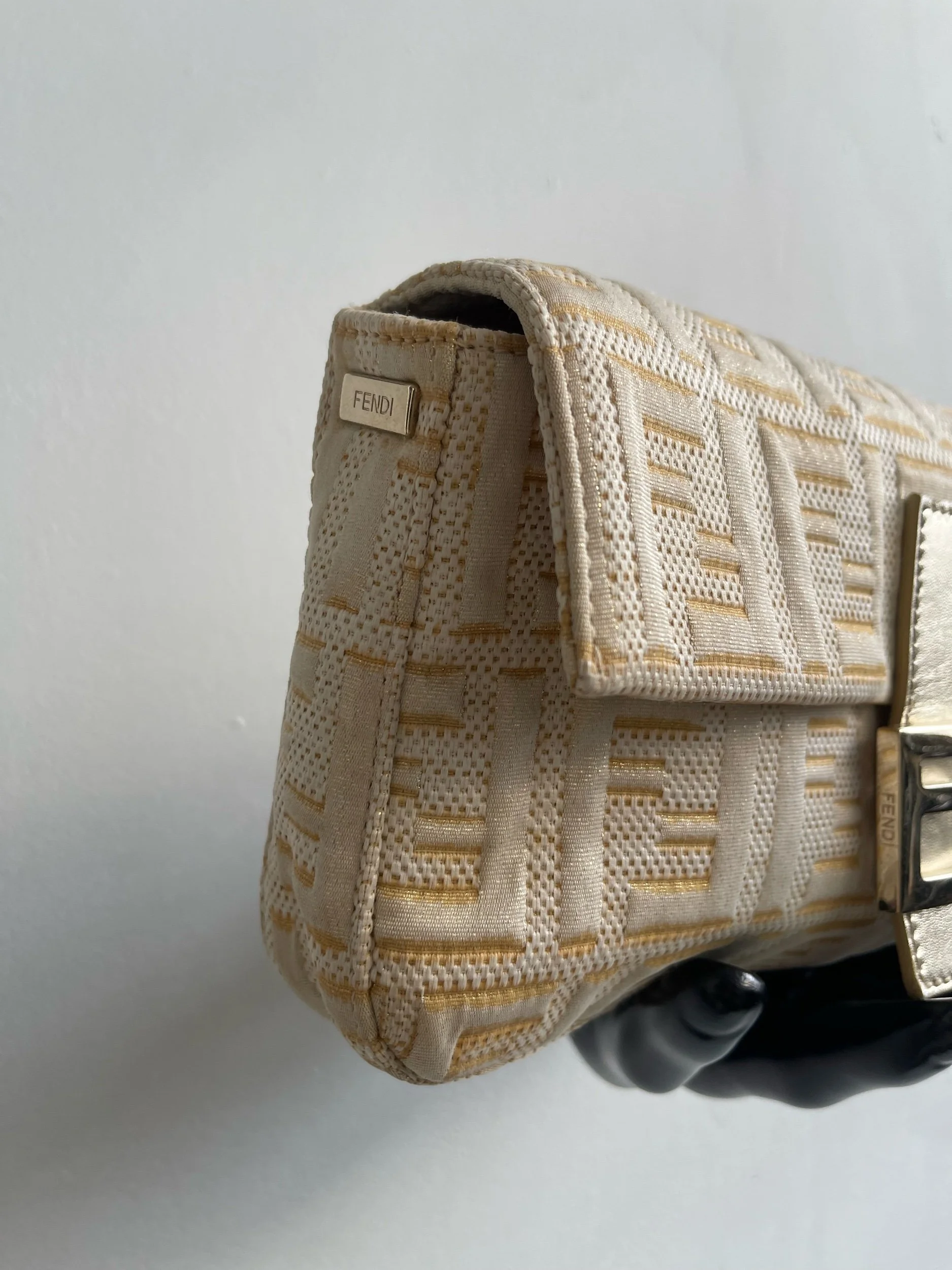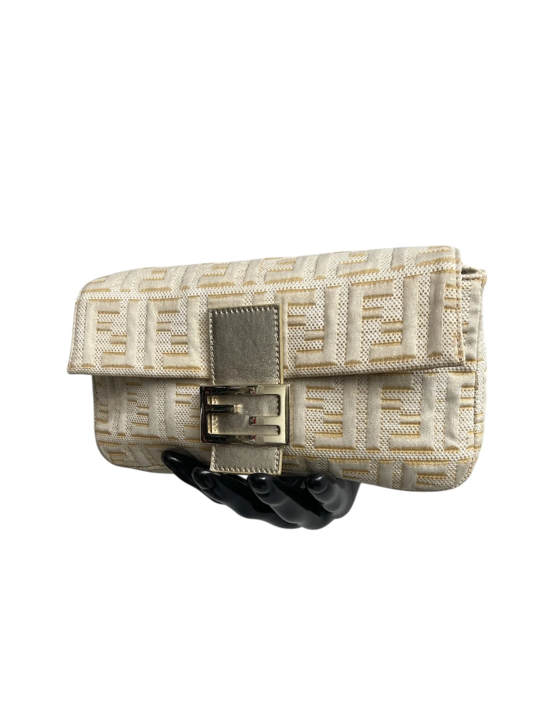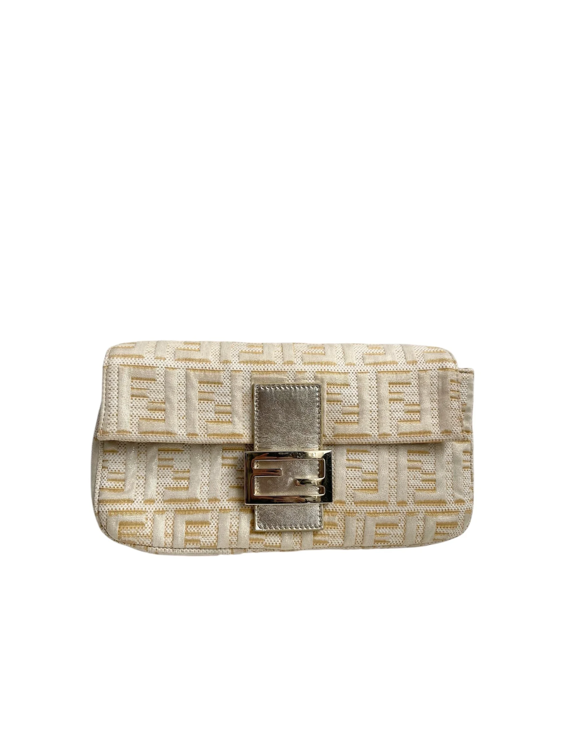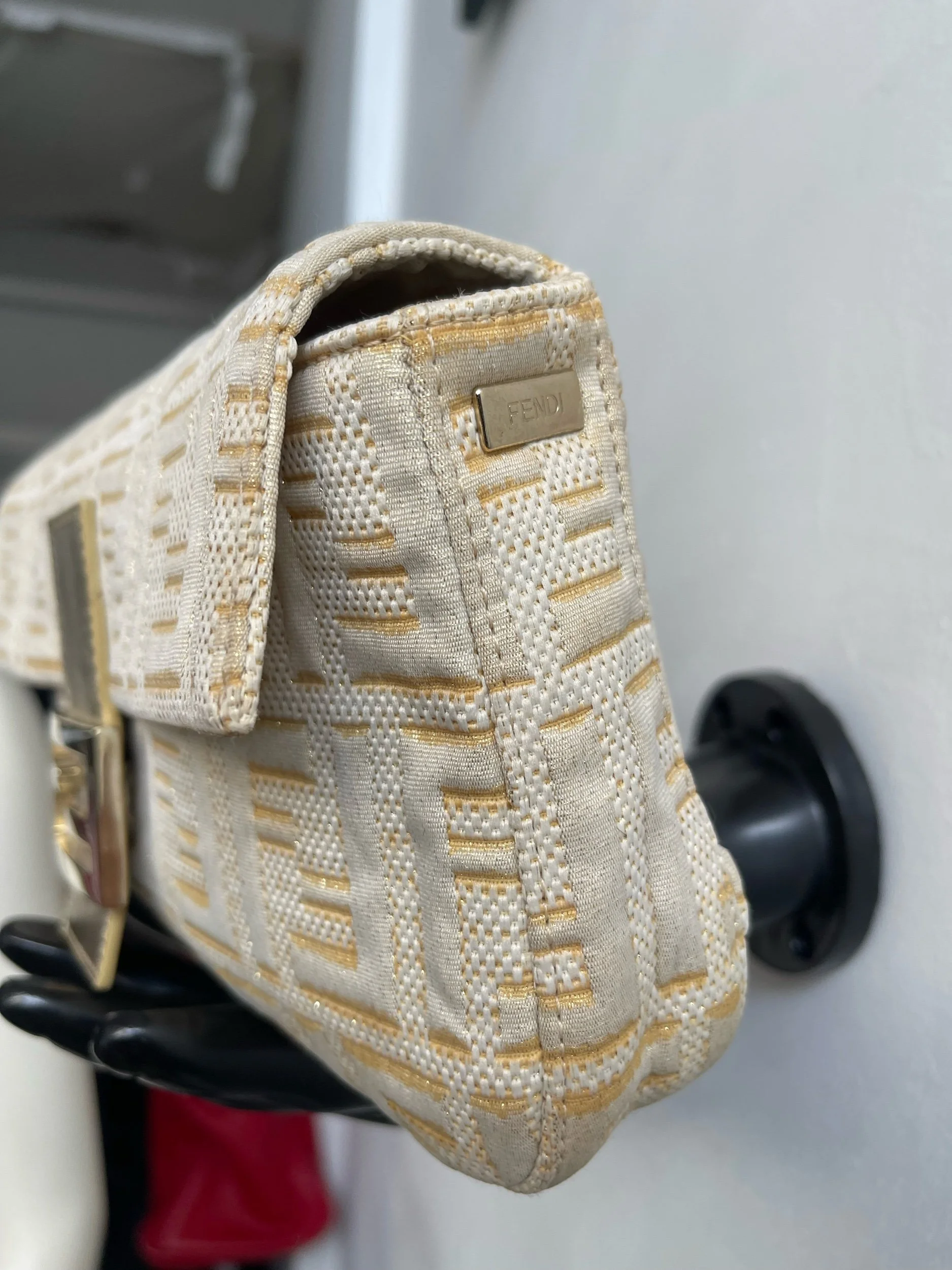 Fendi Cream Metallic Gold Baguette Bag – Re-edition with Removable Strap (Strap Missing)