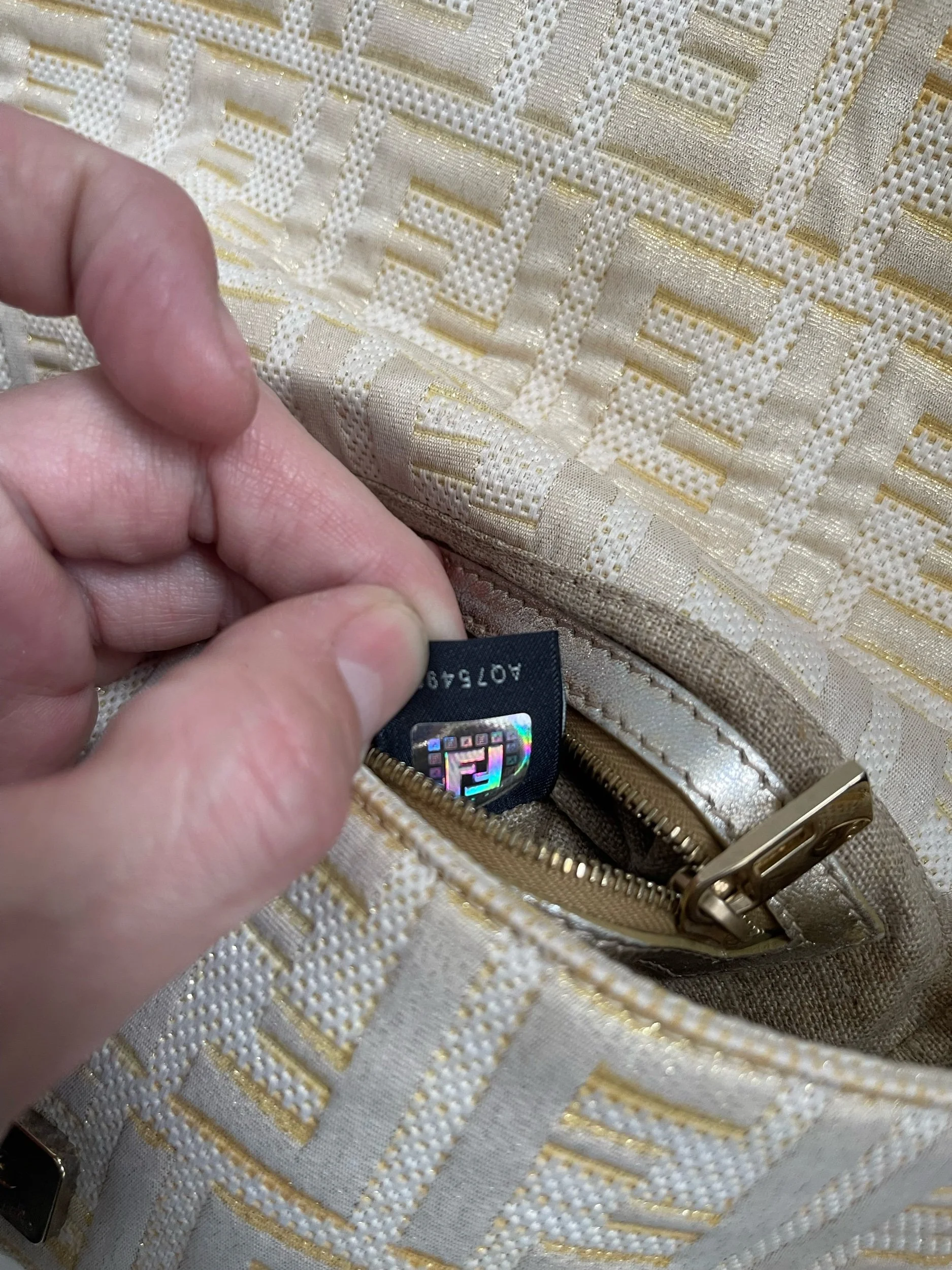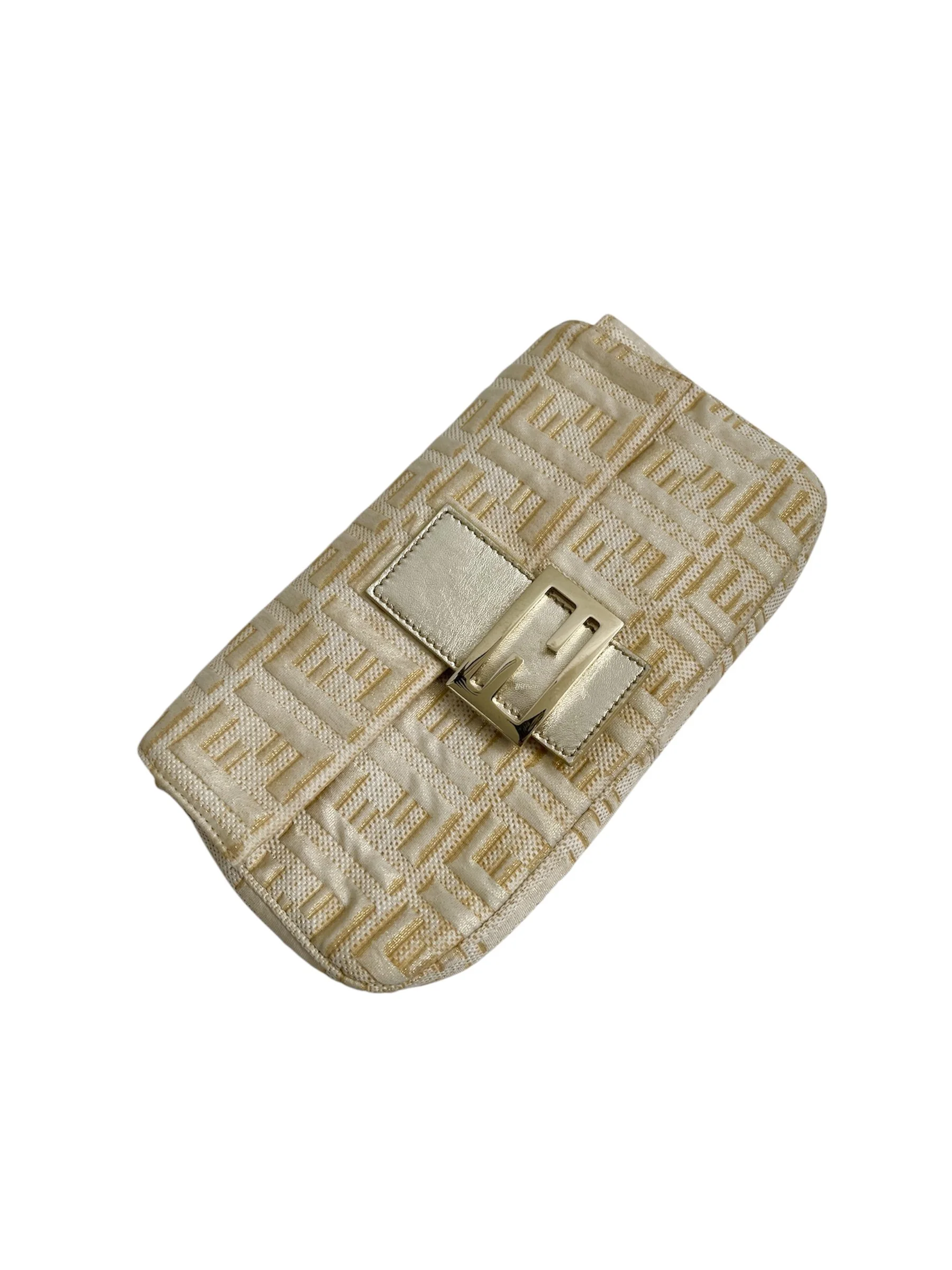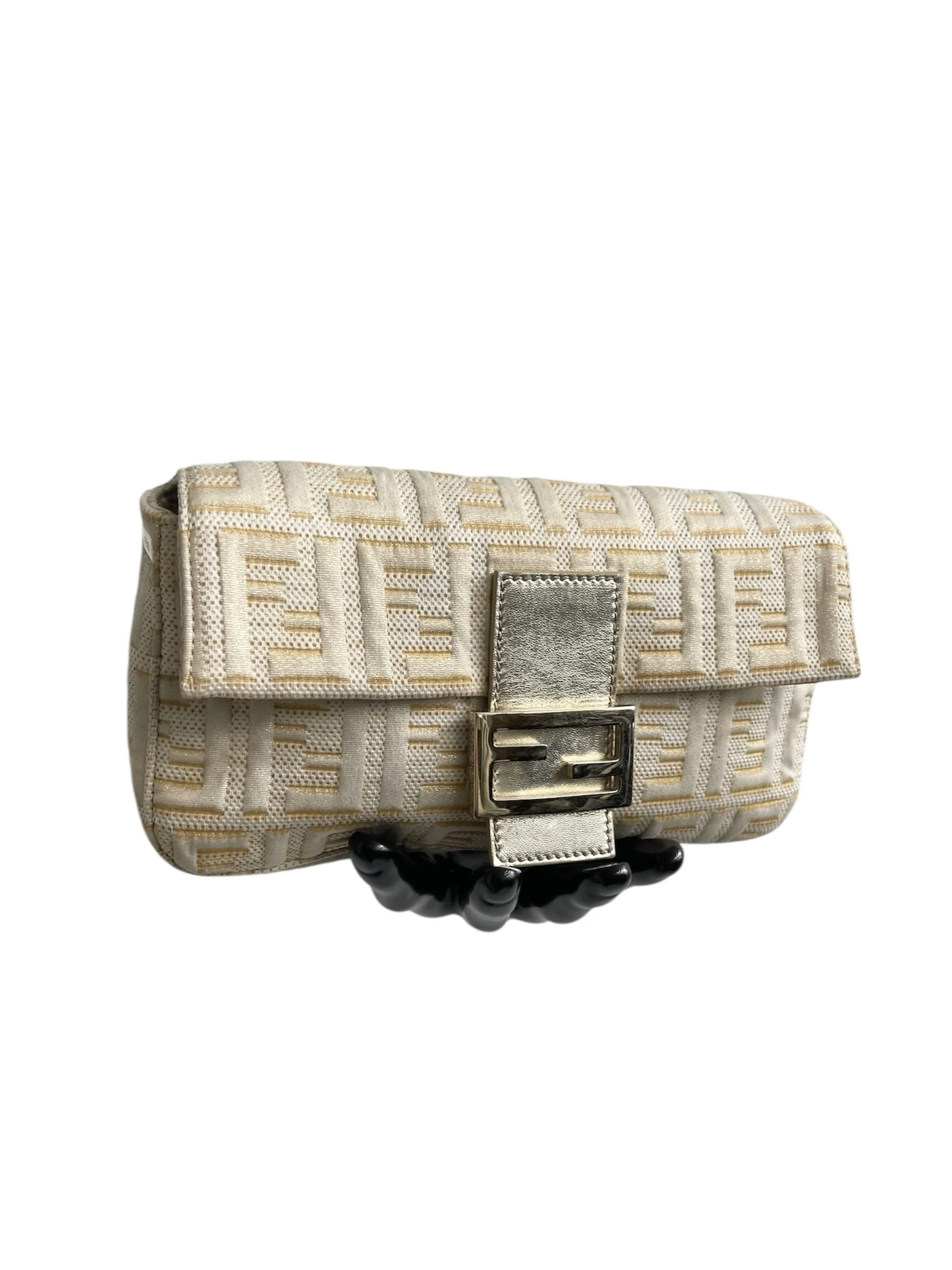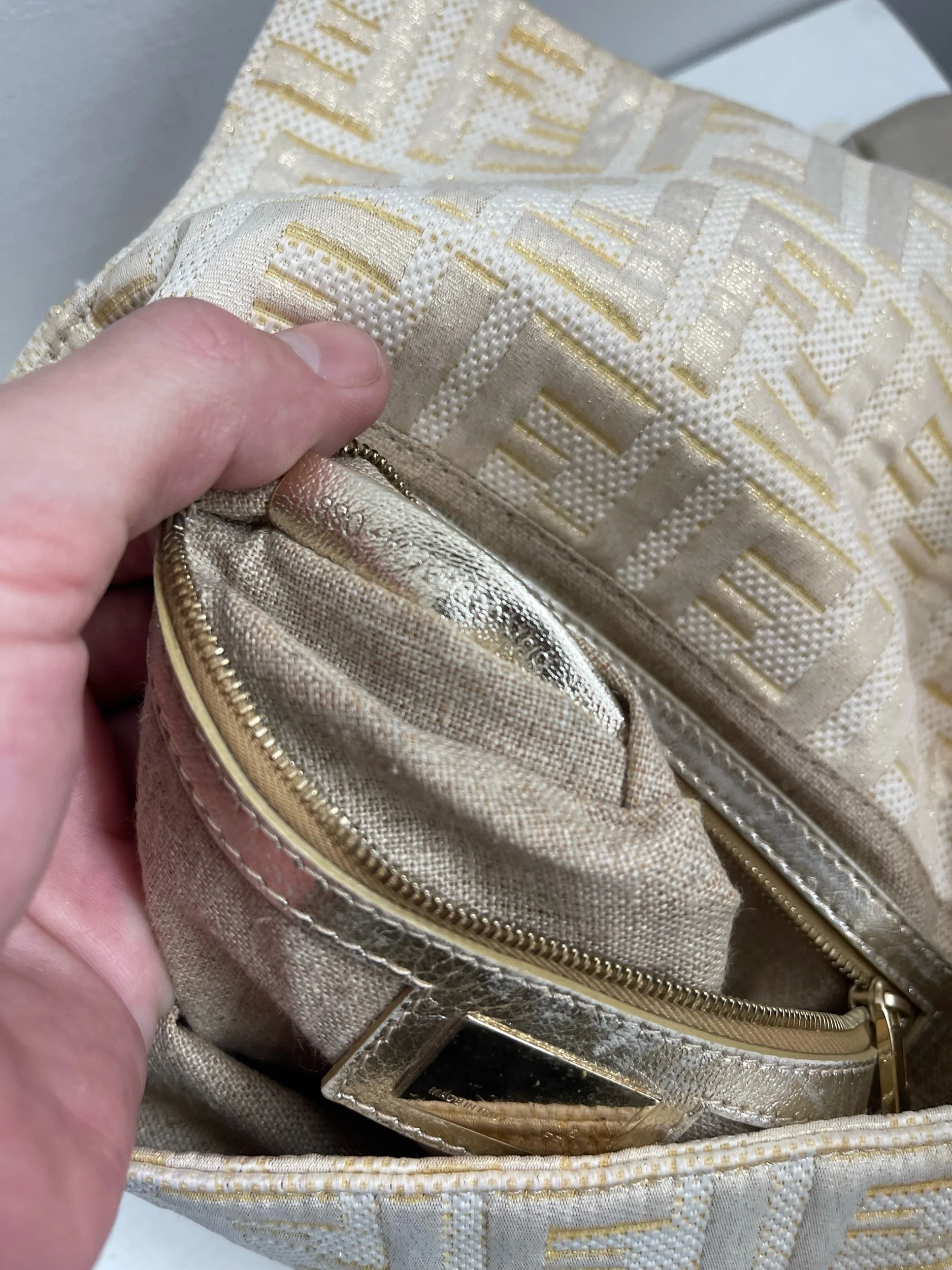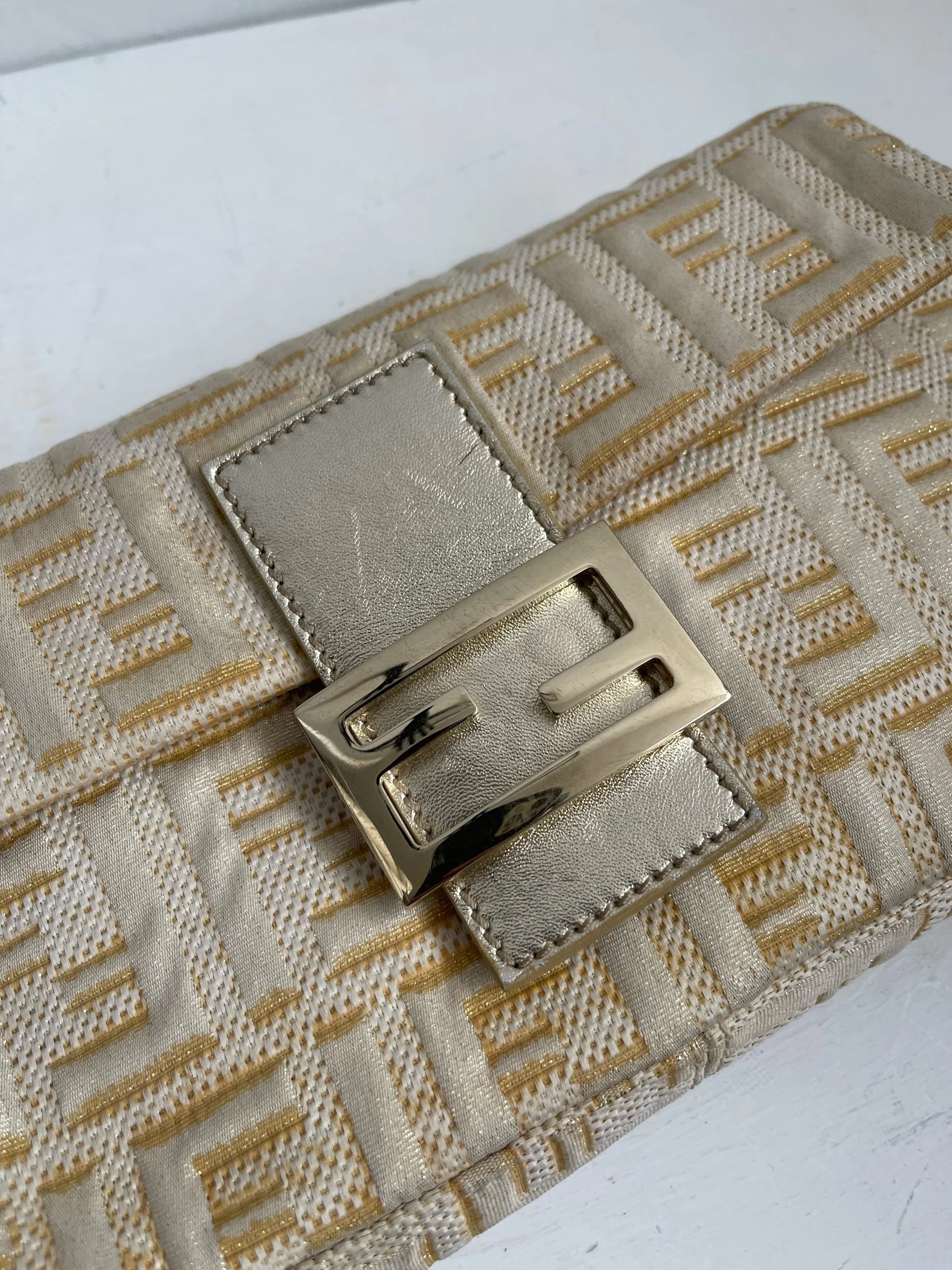 Fendi Cream Metallic Gold Baguette Bag – Re-edition with Removable Strap (Strap Missing)