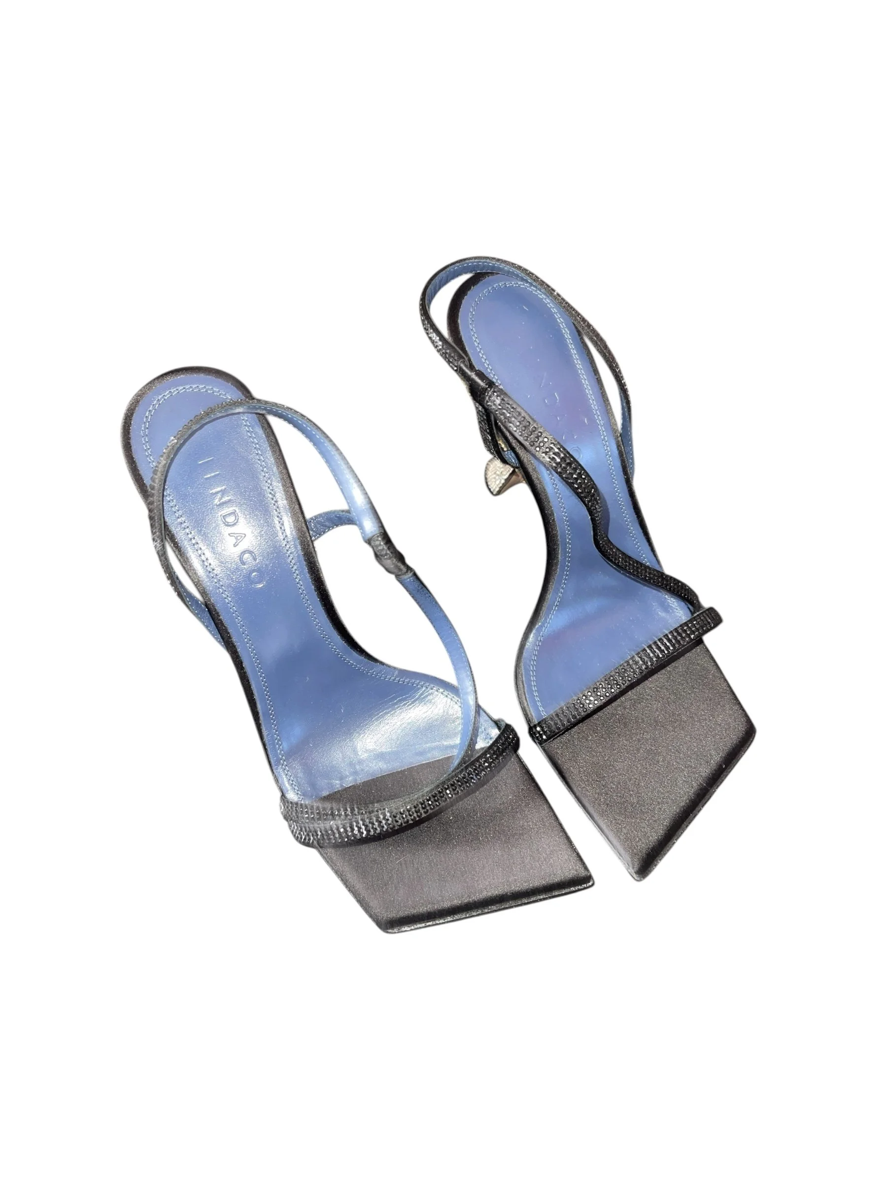 A striking fusion of art and luxury, these IINDACO heeled sandals feature the brand’s signature crystal-encrusted flame heel, designed to make an unforgettable statement. Crafted in Italy with a sleek strappy silhouette, pointed square toe, and shimmering embellished straps, this sculptural style blends elegance with edge. The dramatic flame motif heel is fully adorned in hand-applied crystals, transforming every step into a work of art.