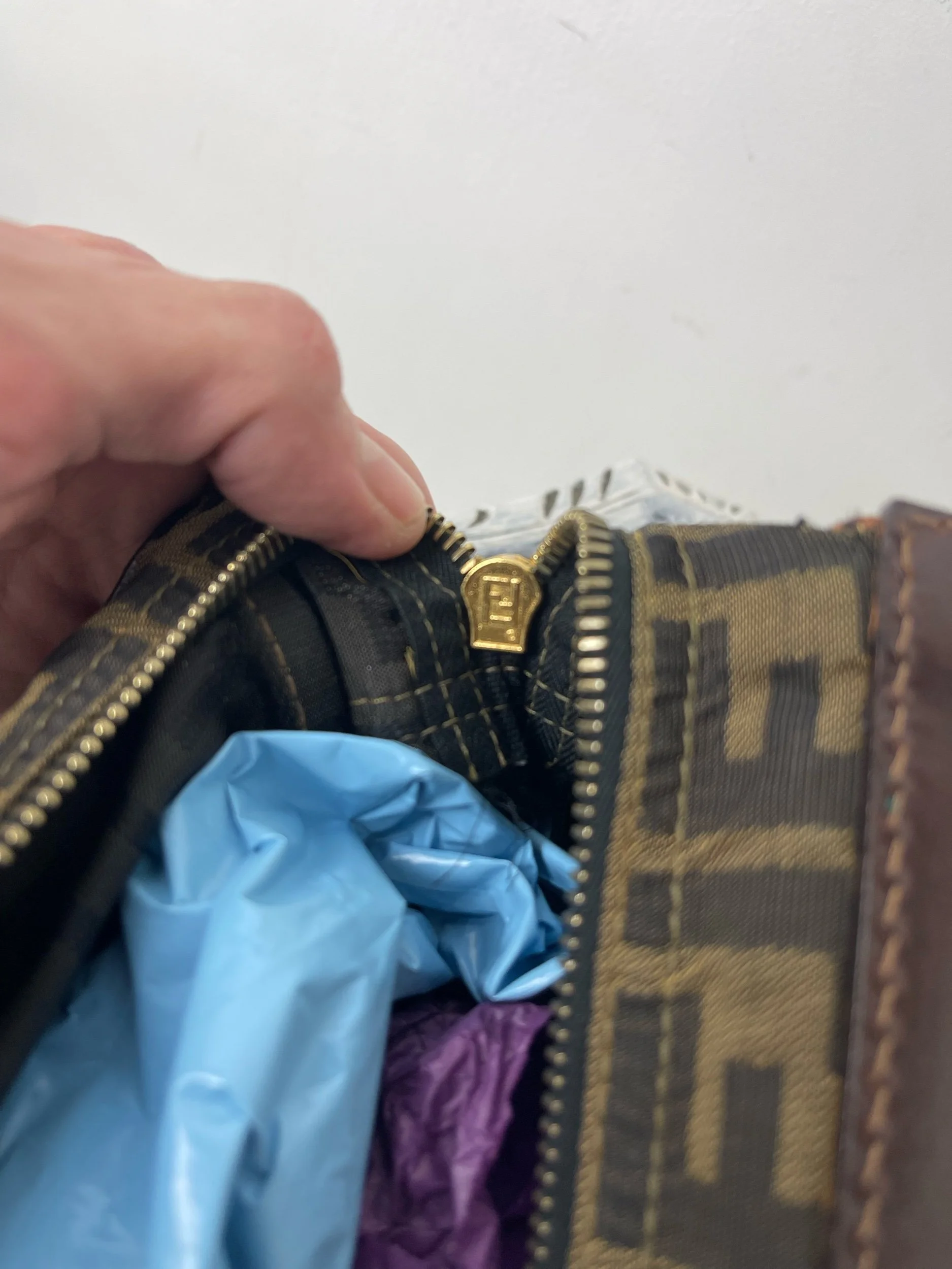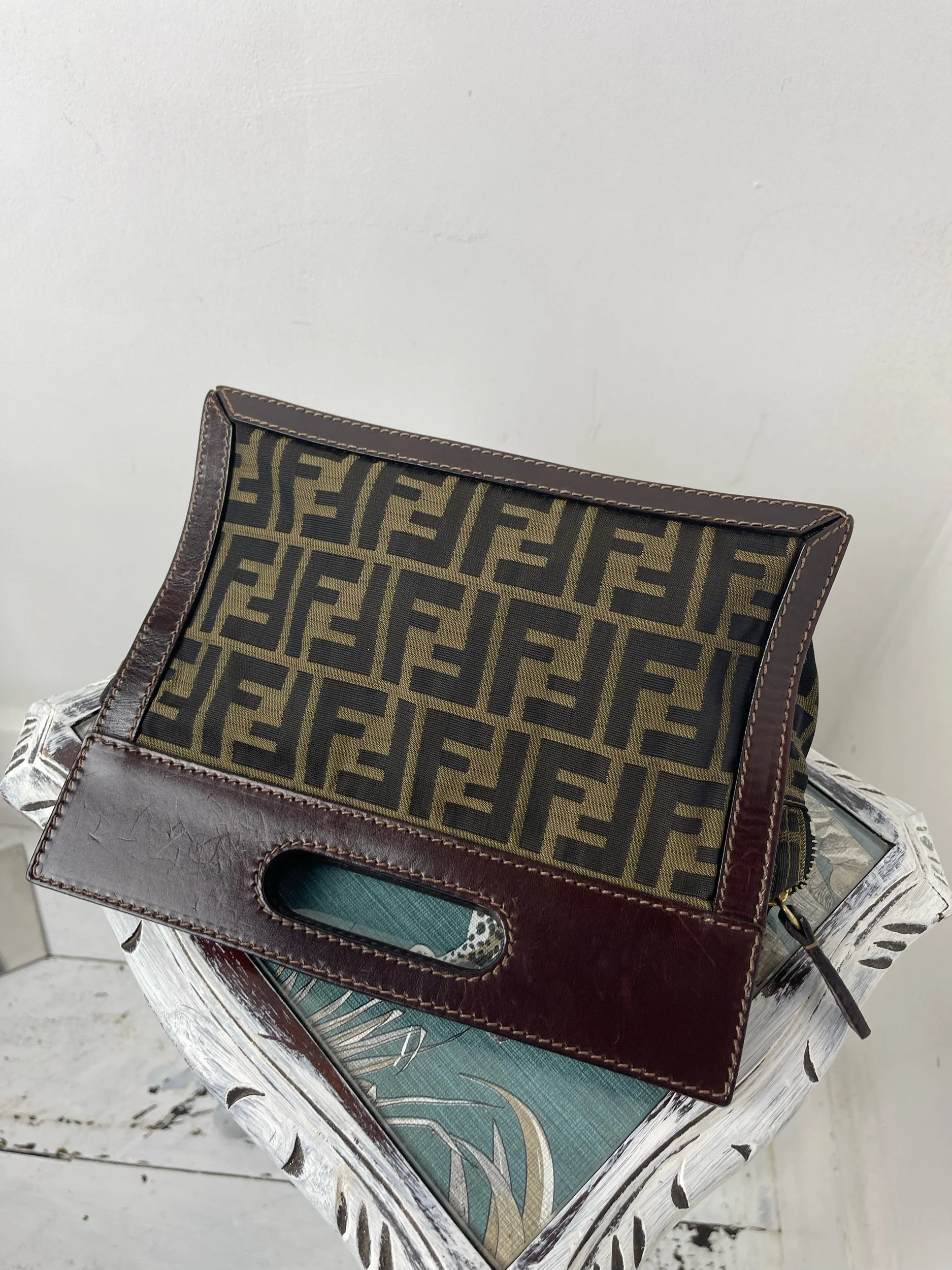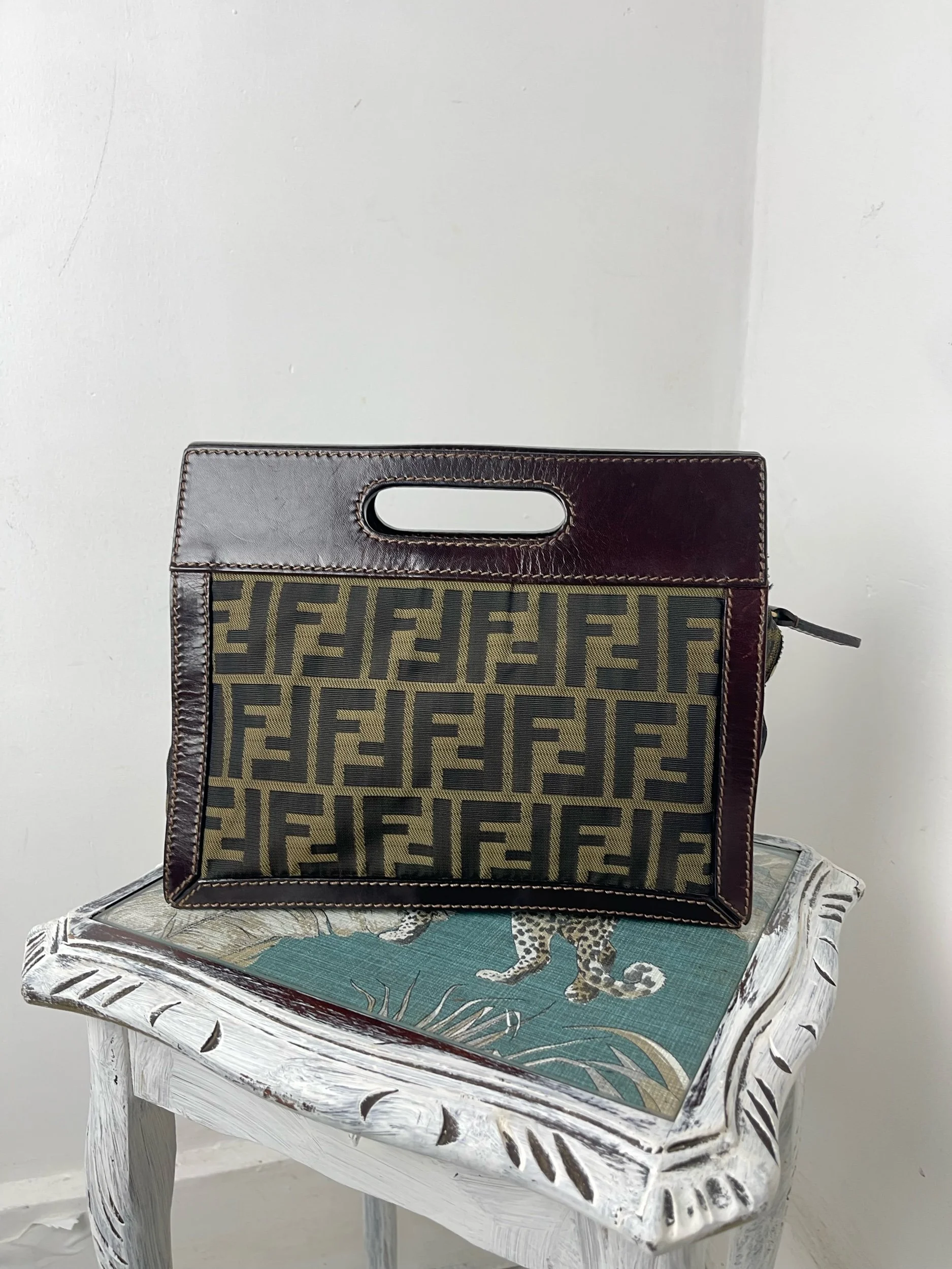 Vintage Fendi Zucca Canvas & Leather Clutch / Handle Bag