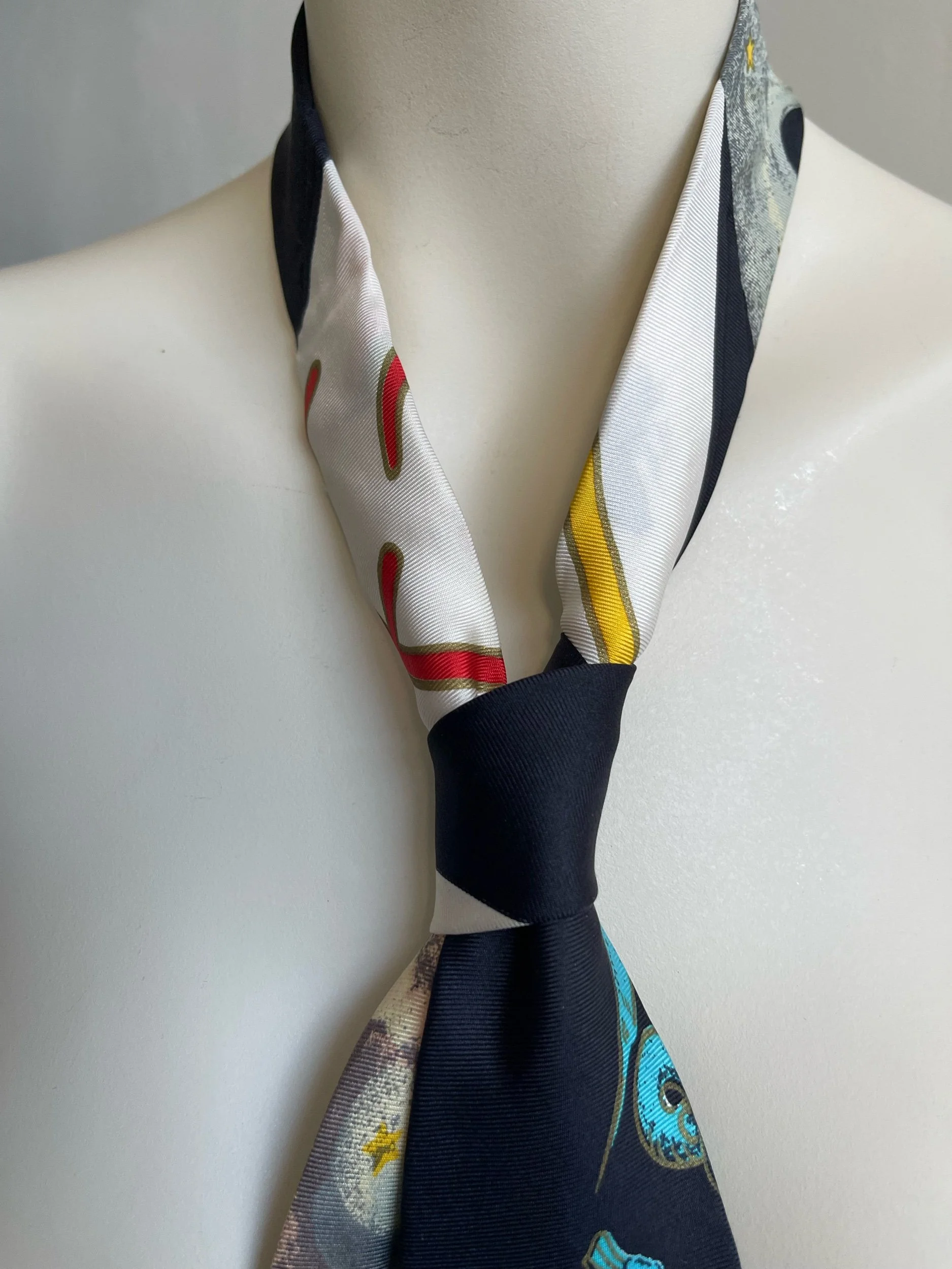 A stunning authentic Gianni Versace silk tie from the 1990s, featuring an exquisite astrological-themed print — a true reflection of Versace’s bold and imaginative design aesthetic. Crafted in Italy from luxuriously soft silk, this tie showcases intricate celestial and zodiac-inspired motifs in signature Versace style.