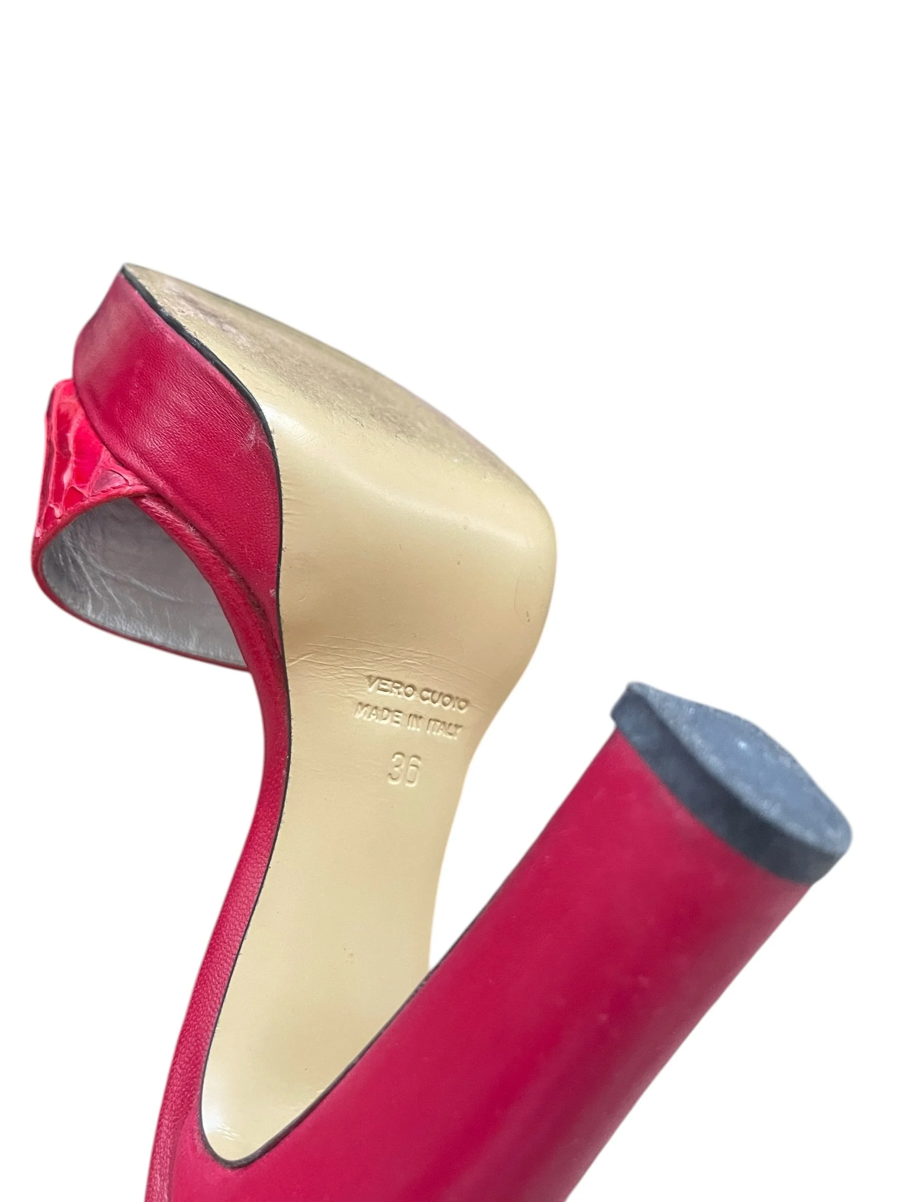 Vintage Michele Lopriore Milano Red Leather Snakeskin Mule Heels – EU 36 / UK 3