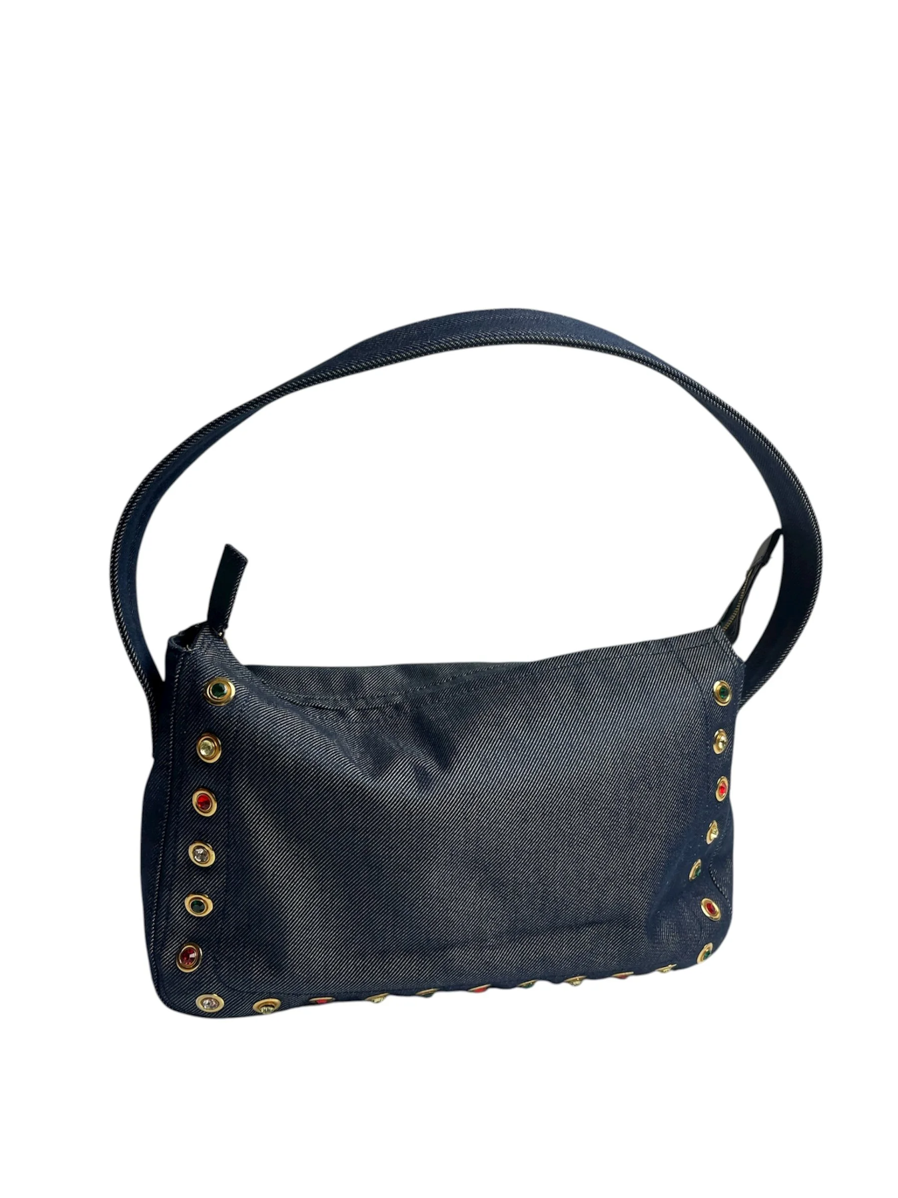 Vintage Gianni Versace Denim Shoulder Bag with Jewel Studs