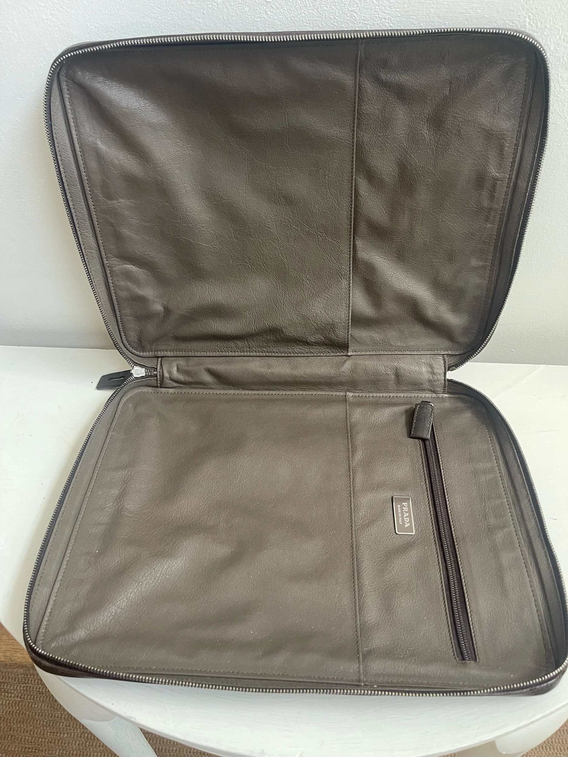 🤎 Prada Brown Leather Zip-Around Document & Laptop Bag – Unisex 🤎