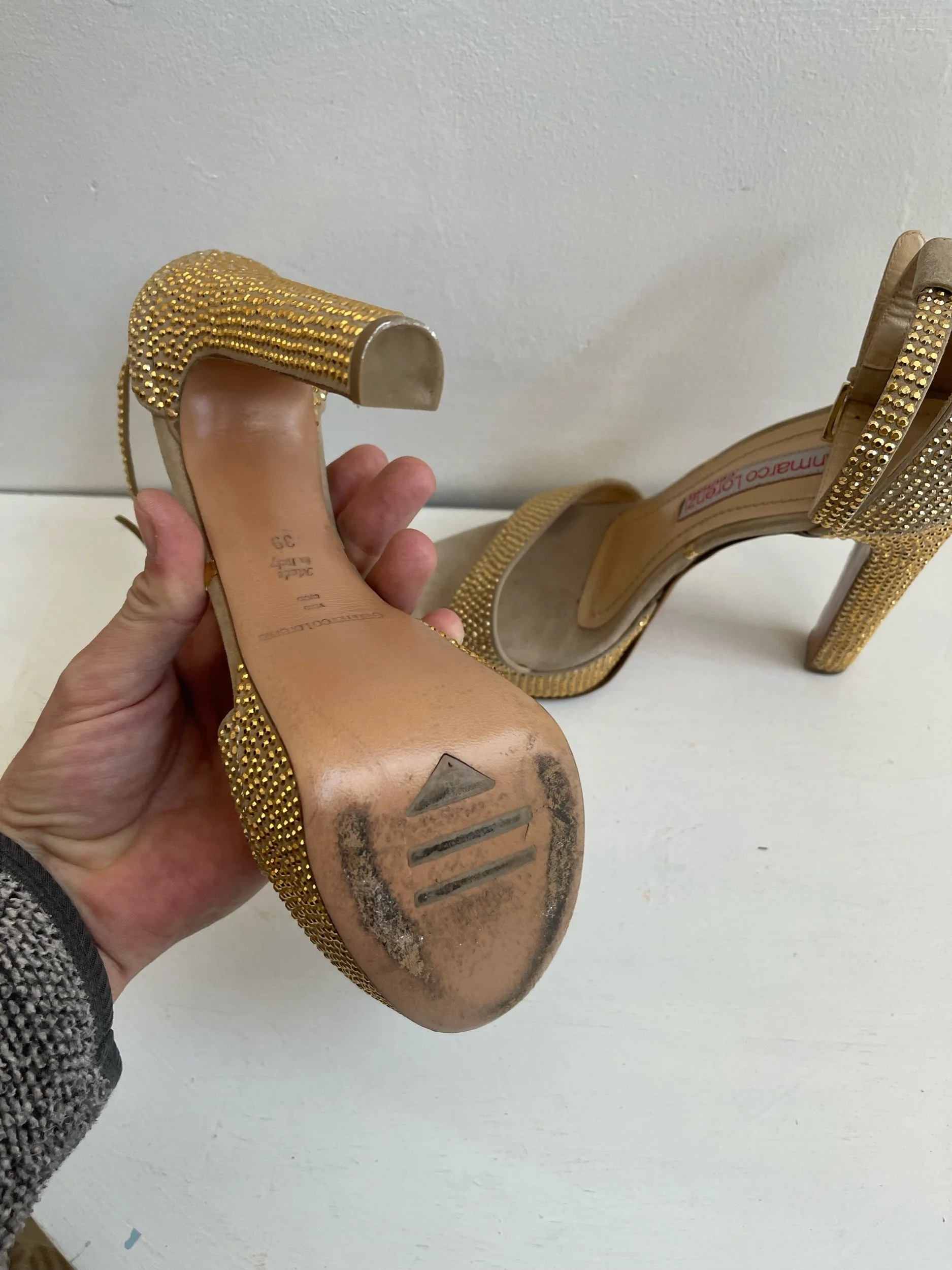 ✨ Gianmarco Lorenzi Couture Gold Studded Platform Sandals – Size 39 ✨