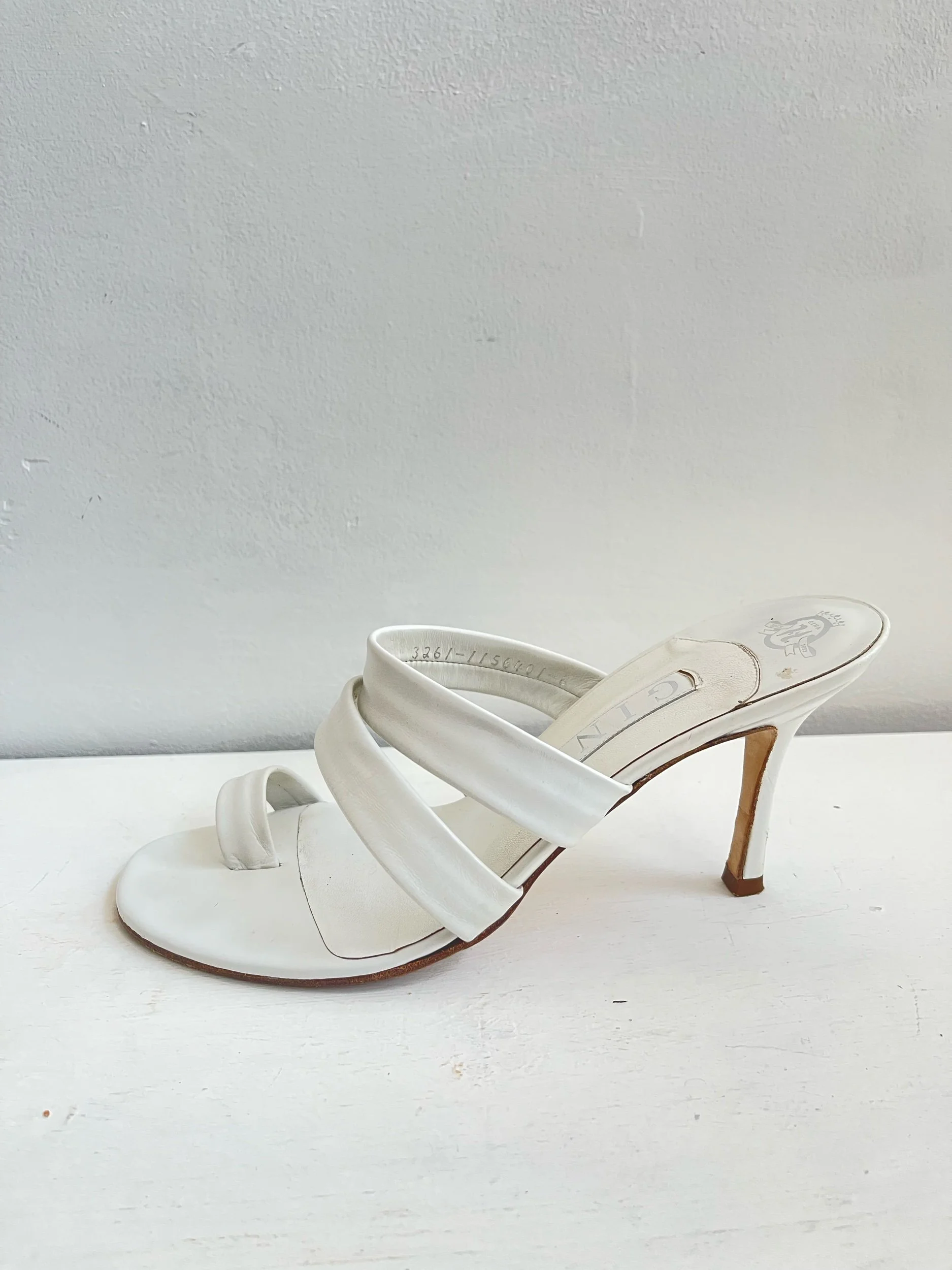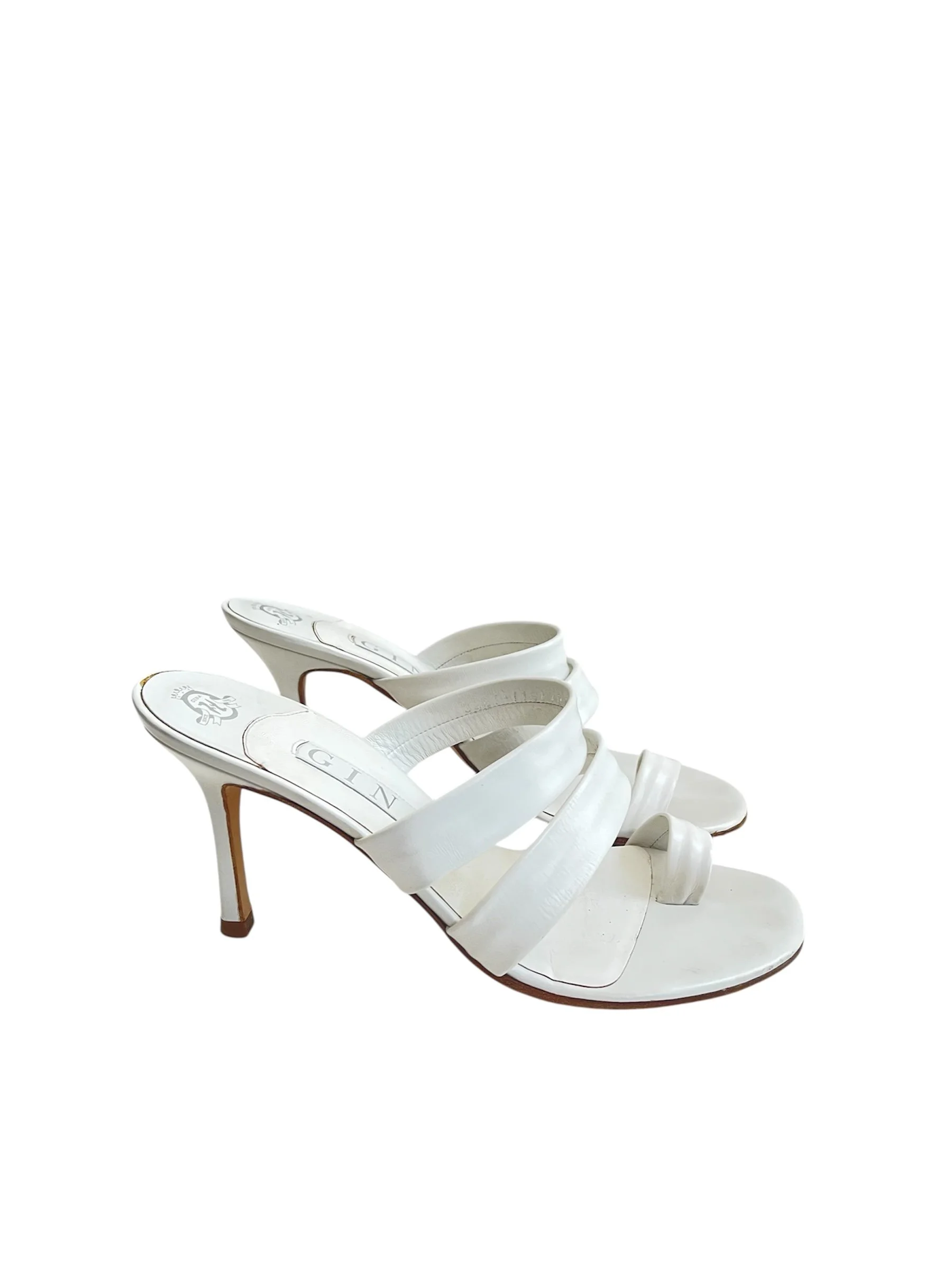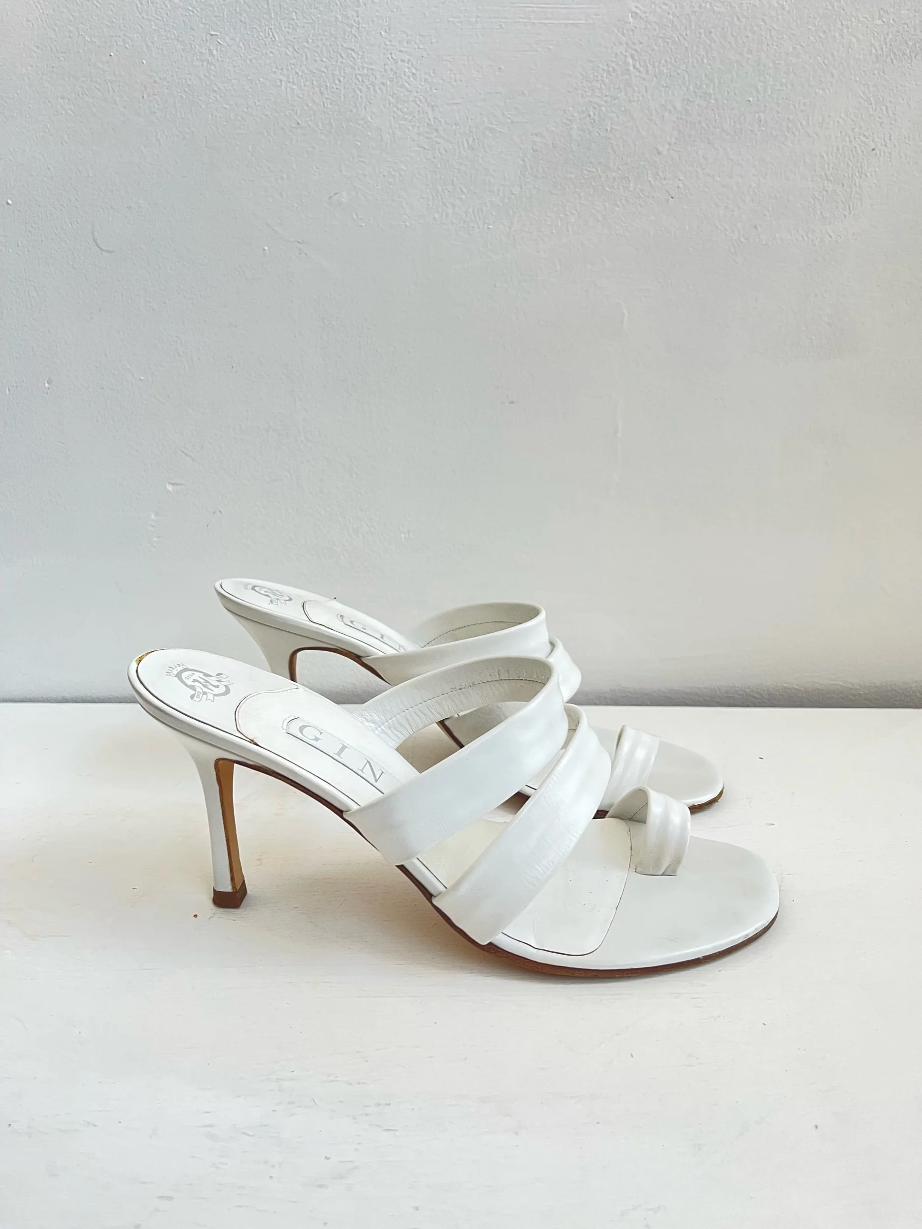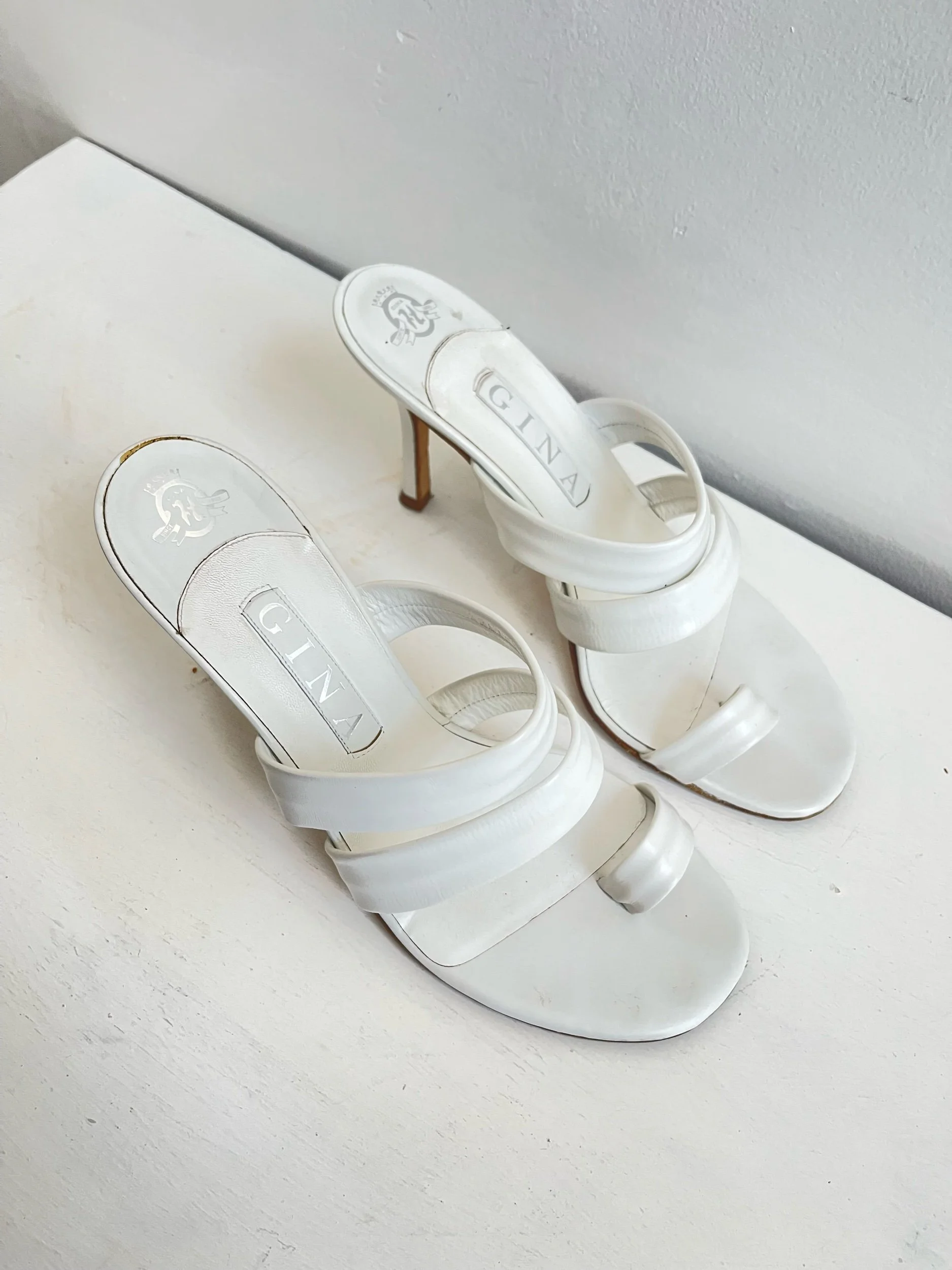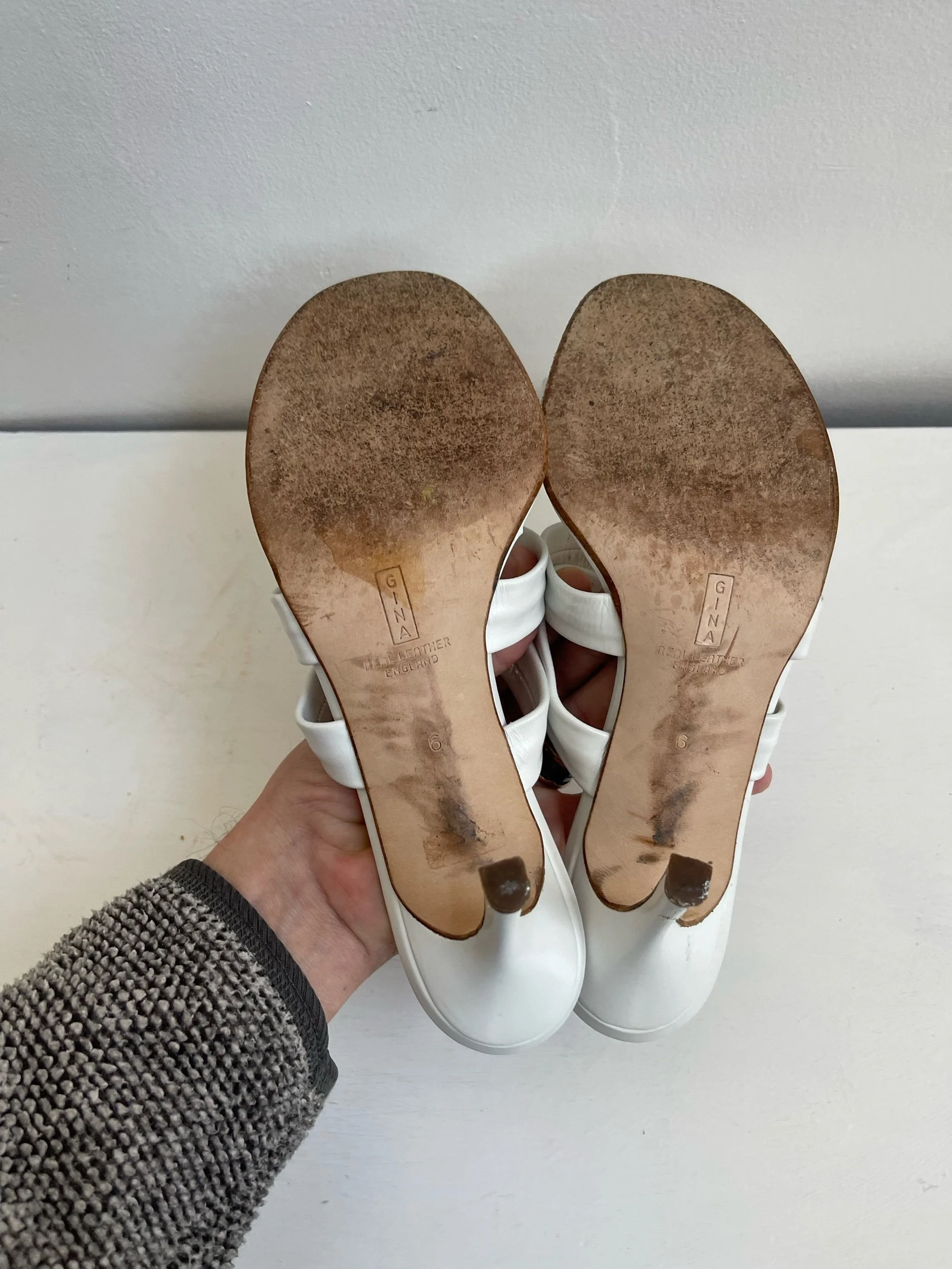 🤍 Gina London White Nappa Leather Toe Post Sandals – Size 6 🤍
