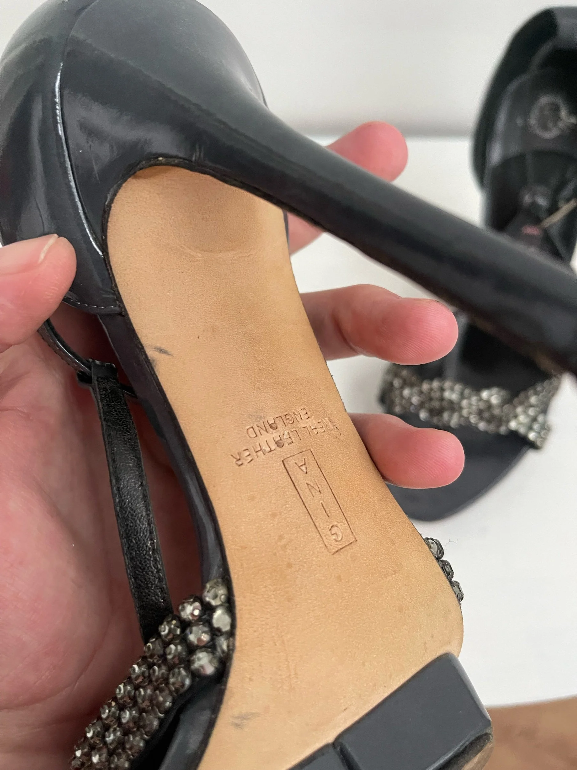 Gina London Patent Platform Sandals with Crystal Twist – Size UK 5