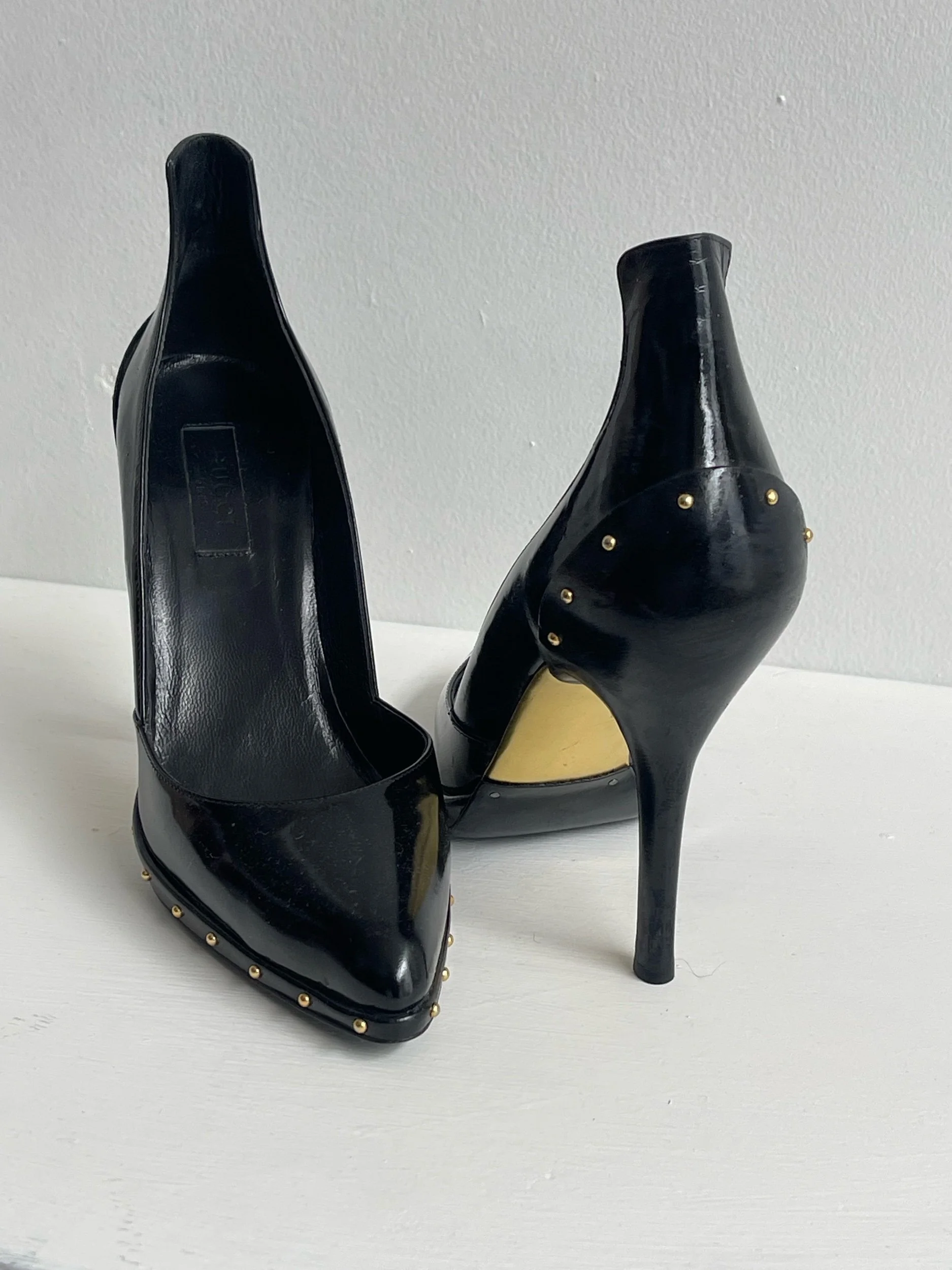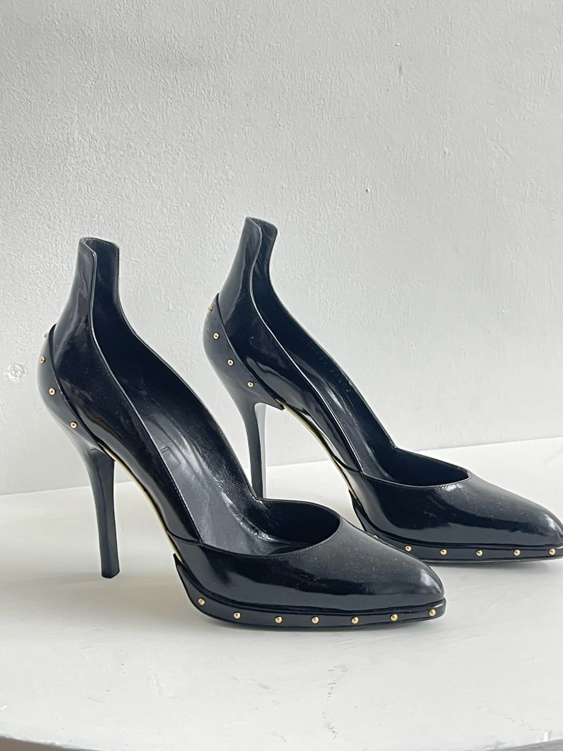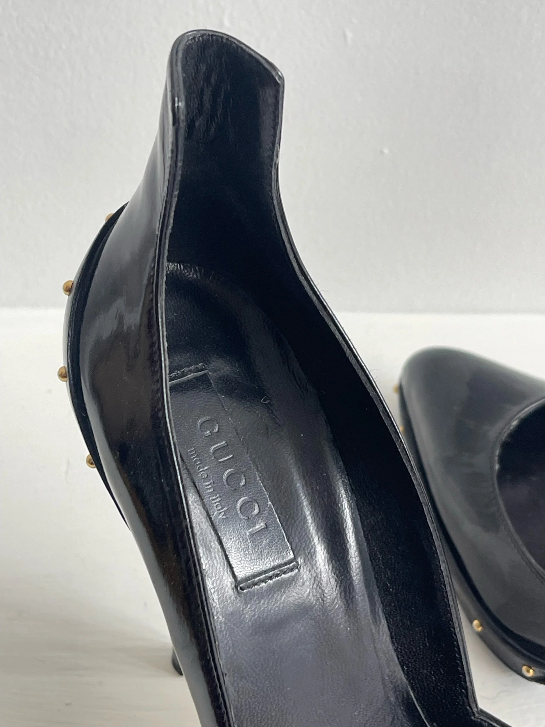 Gucci Autumn/Winter 2002 Runway Heels – Black Leather with Gold Studs