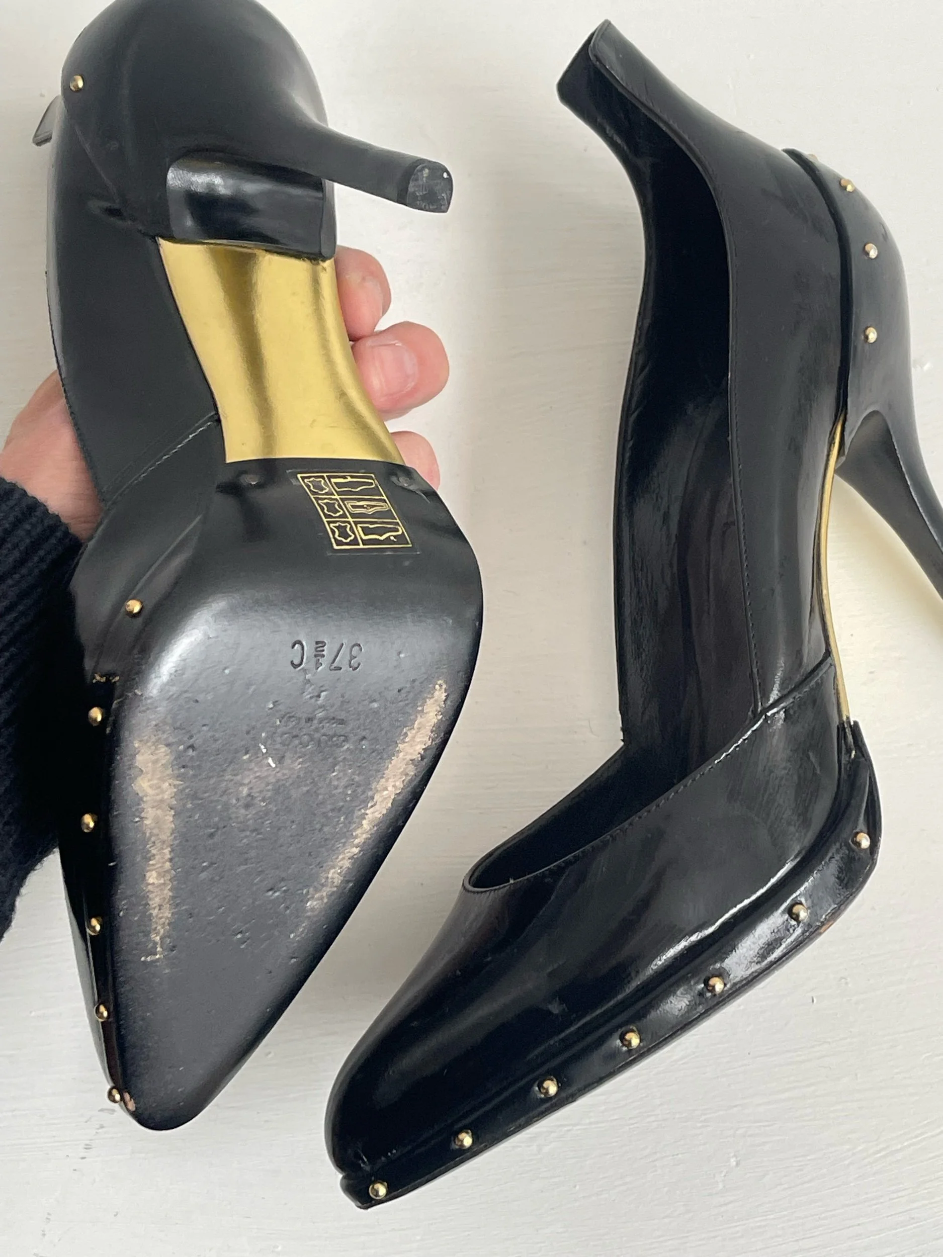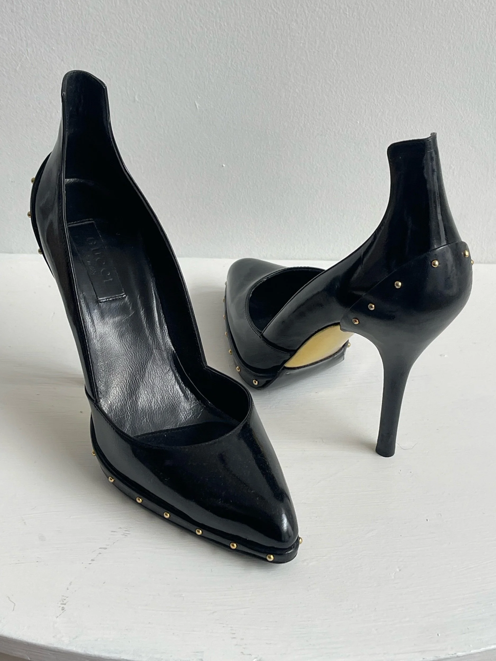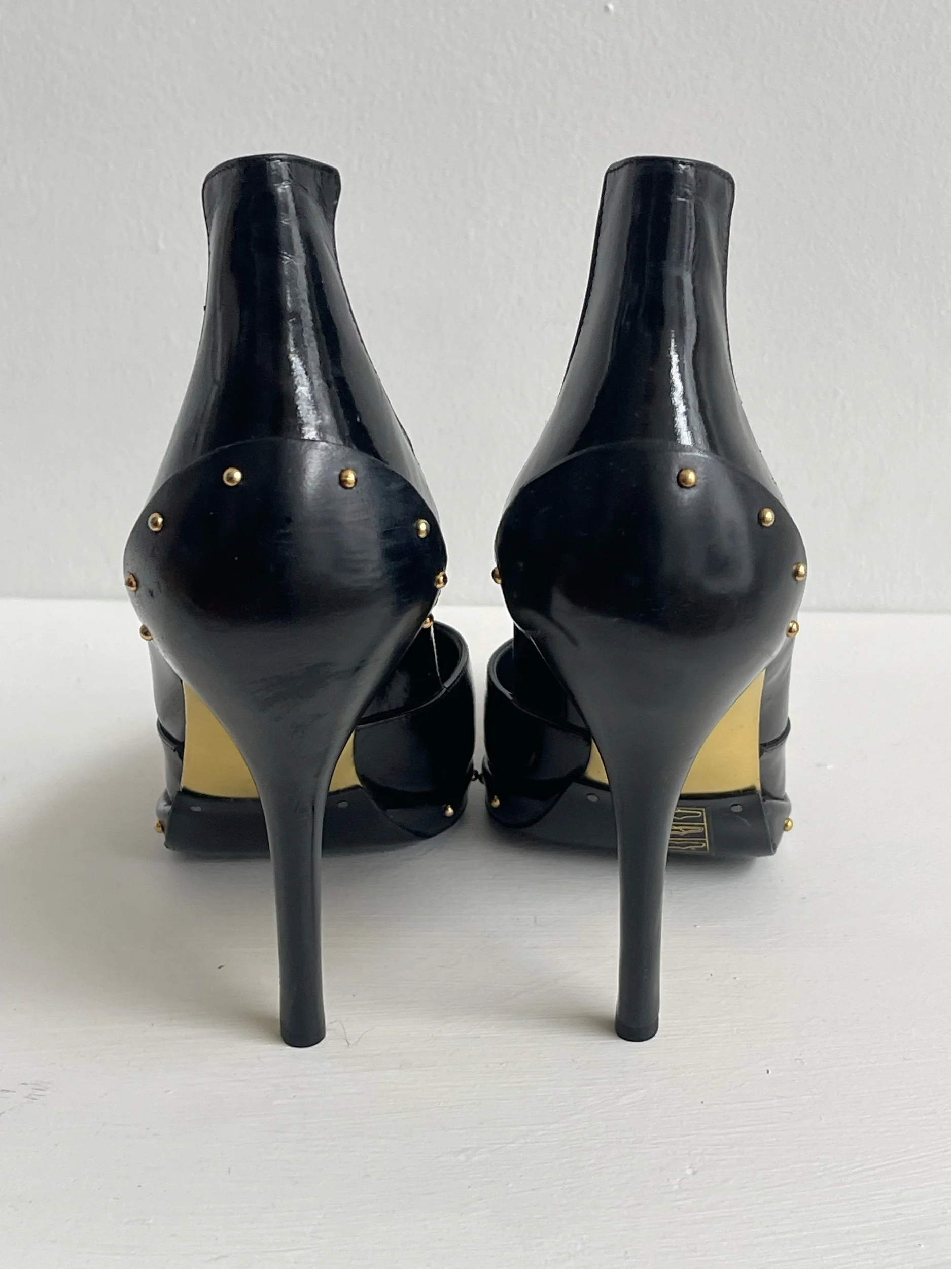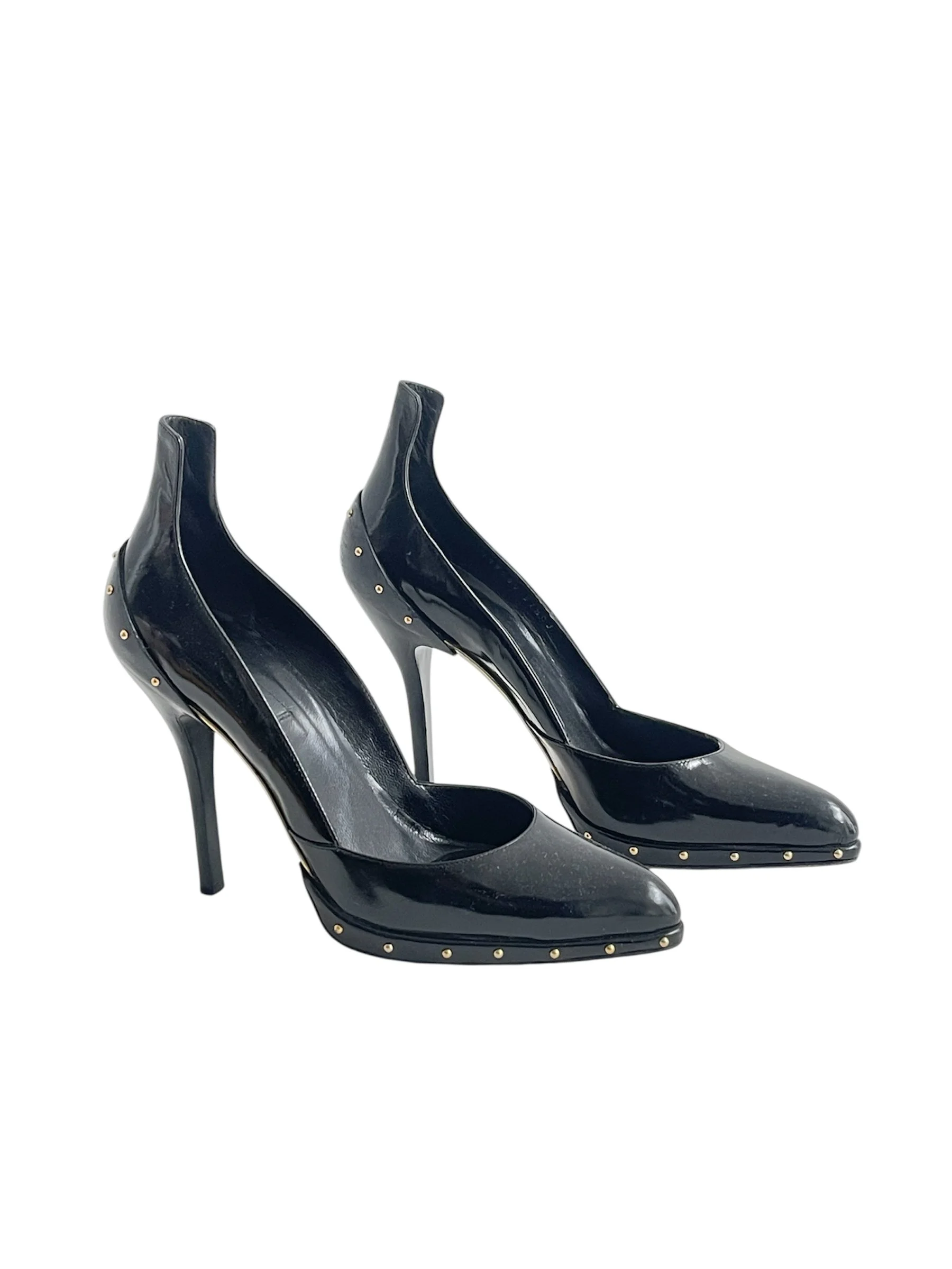 Gucci Autumn/Winter 2002 Runway Heels – Black Leather with Gold Studs