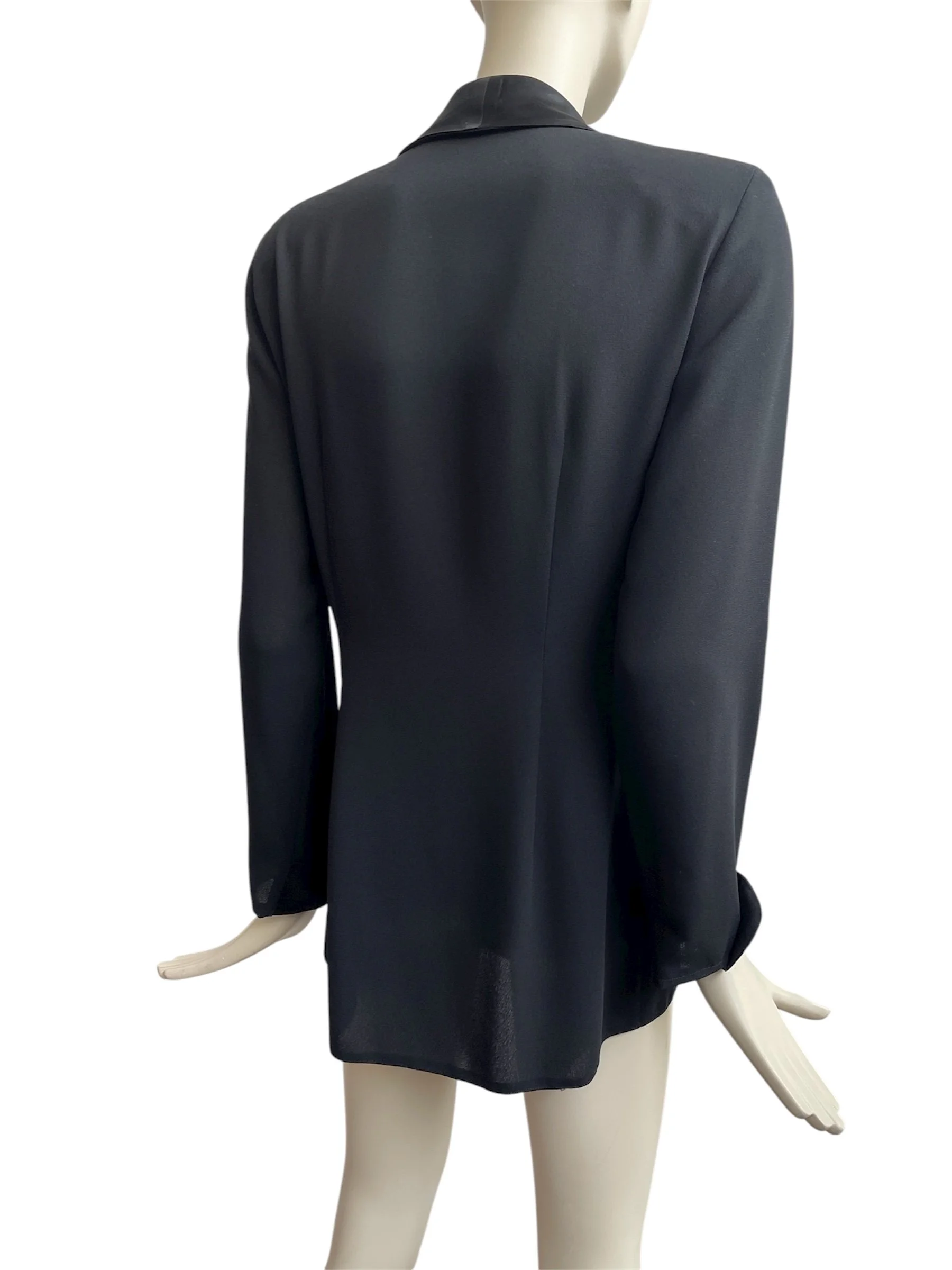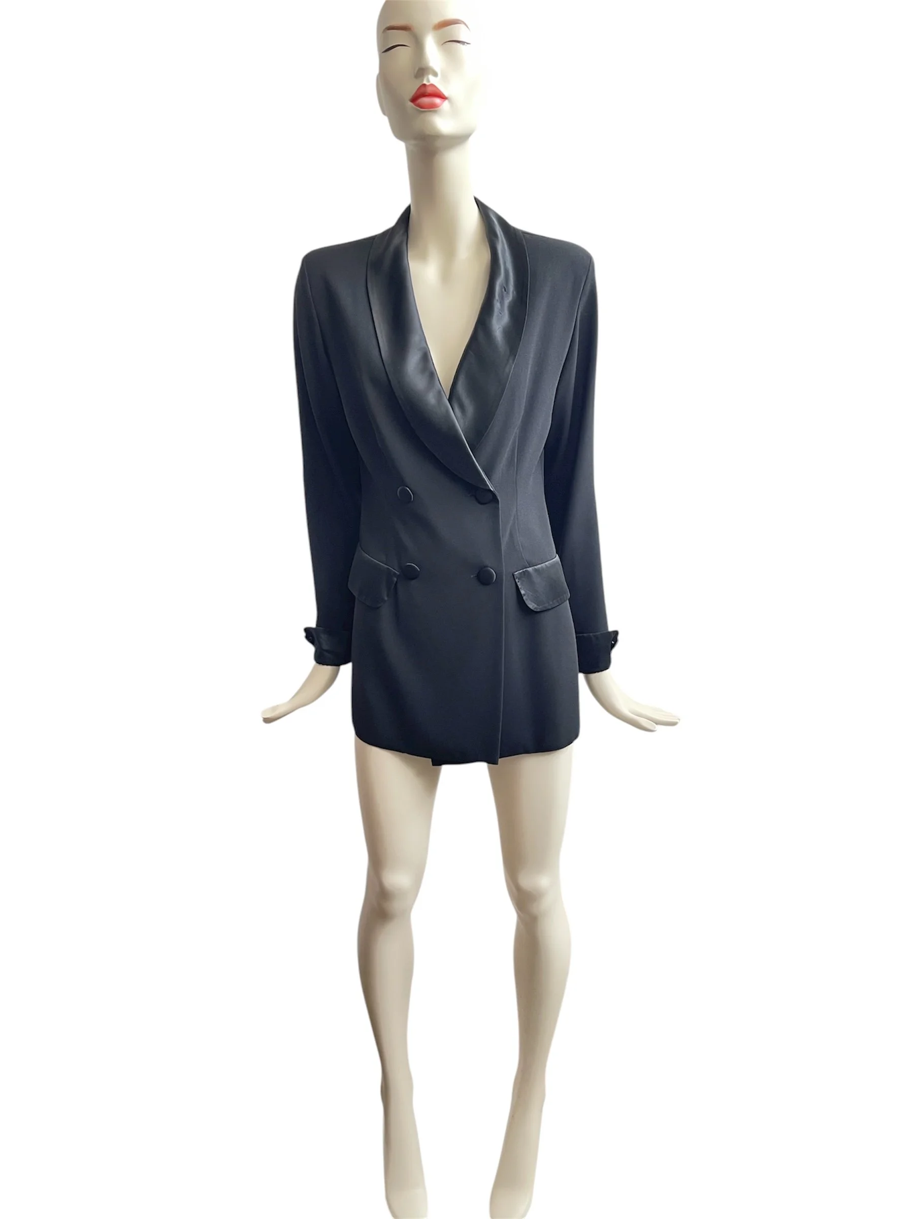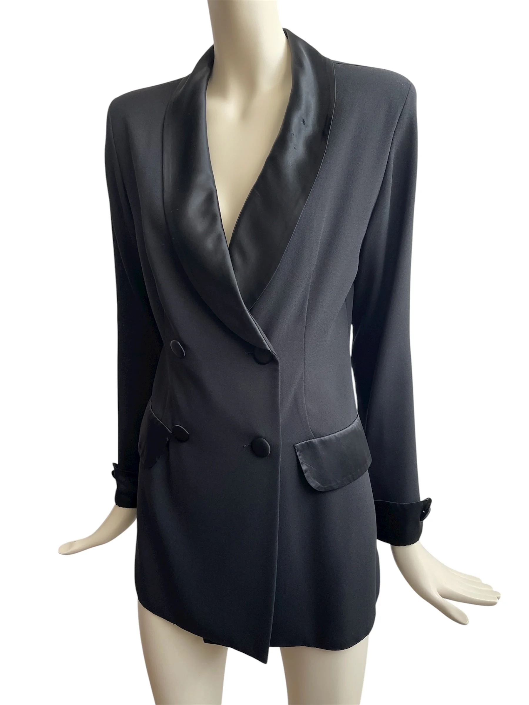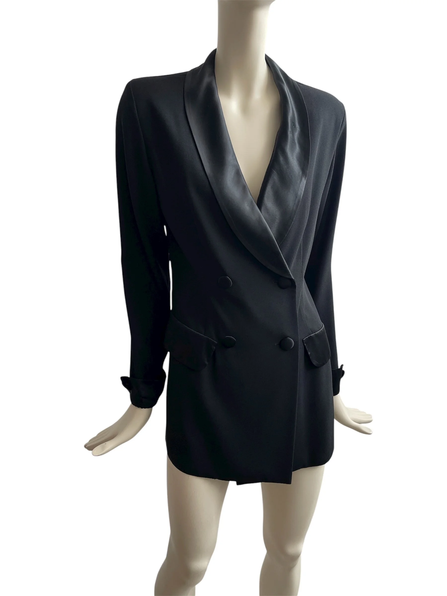 Classic 1990’s tuxedo-style jacket featuring sharp tailoring, satin lapels, and that iconic androgynous silhouette from the era. A versatile piece that can be dressed up formally or styled with denim for a modern twist.