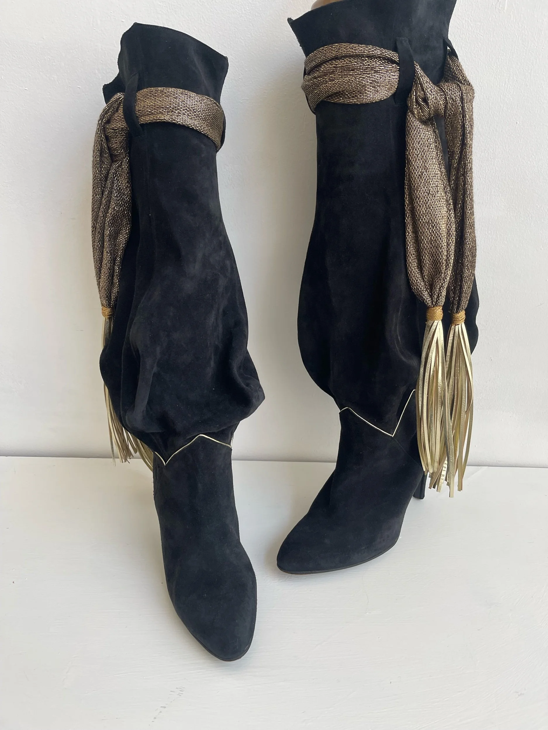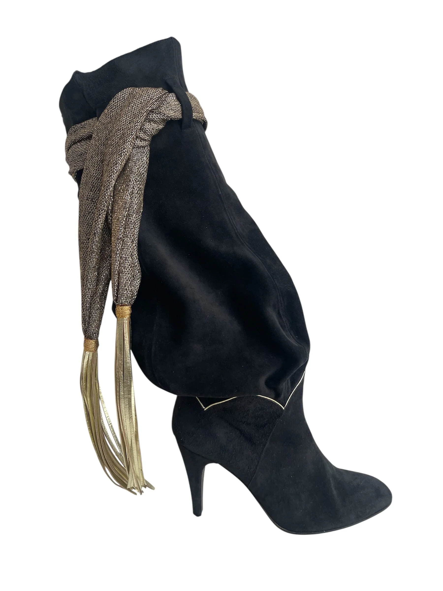 Vintage 1970s Suede Balloon Boots with Gold Leather Tassel – Size 37