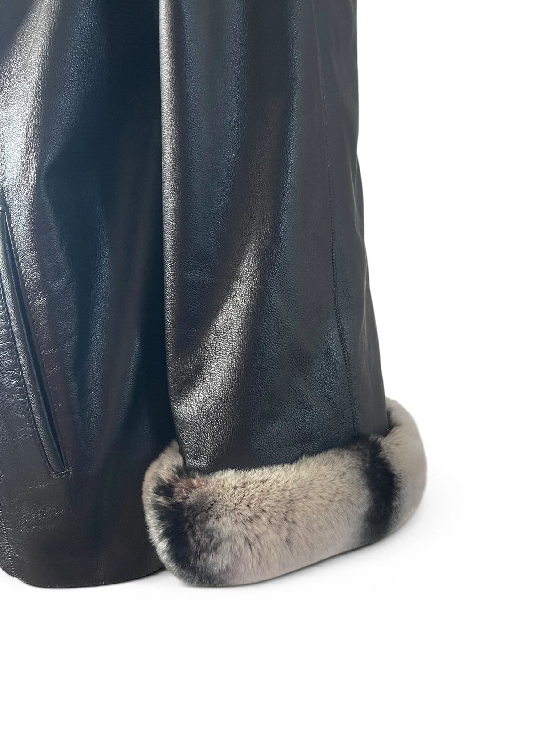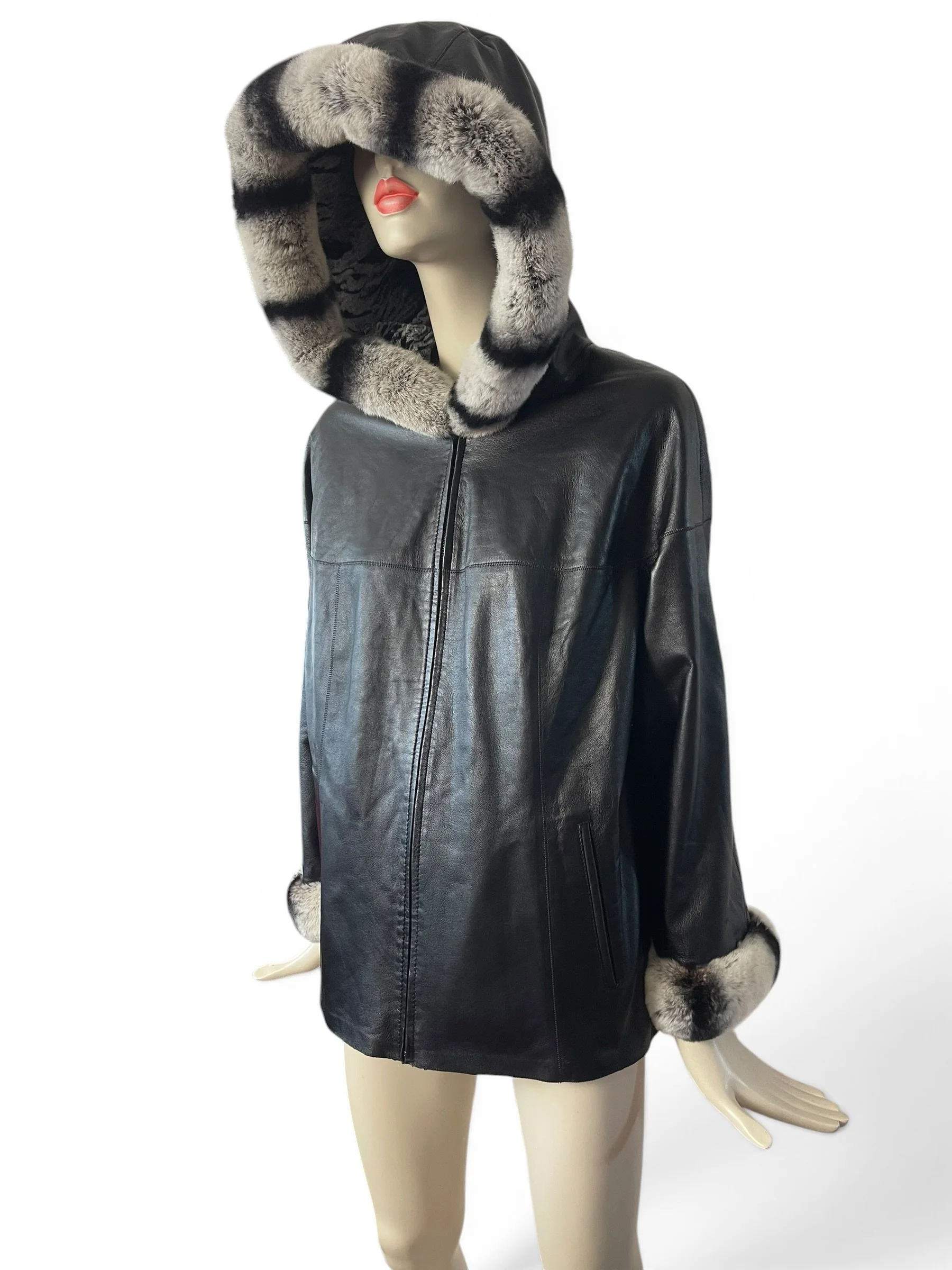 Buttersoft Leather Reversible Hooded Coat with Chinchilla Trim